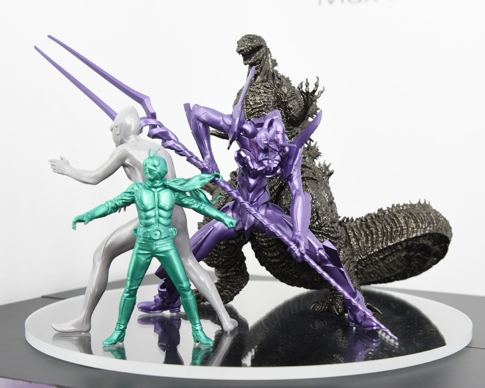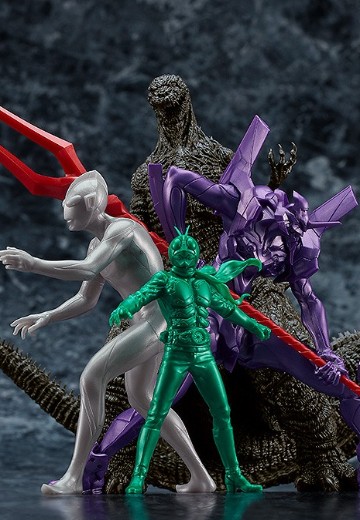 出自《正宗哥吉拉》、《福音戰士新劇場版》、《新‧超人力霸王》、《新‧假面騎士》4部作品合作的奇蹟計畫《新‧日本英雄宇宙》,前田真宏描繪的主視覺以4件1組的方式化身為組裝模型。塑膠零件特別選用5種顏色,適合各角色且無塗裝也可直接展示的金屬色。組裝即可展現出主視覺充滿魄力的構圖,並忠實重現了各角色間的尺寸差異。Max Factory所培育的固定姿勢組裝模型技術,各別展現在假面騎士的「特技演員感」、超人力霸王的「美麗站姿」、EVANGELION初號機的「強而有力機械感」,以及哥吉拉的「魄力十足的表面細節」中。立體表現幾乎無法識別是以硬質素材所建構,堪稱組裝模型史上的一個里程碑。這是件所有動畫、特攝粉絲都務必入手的究極逸品。