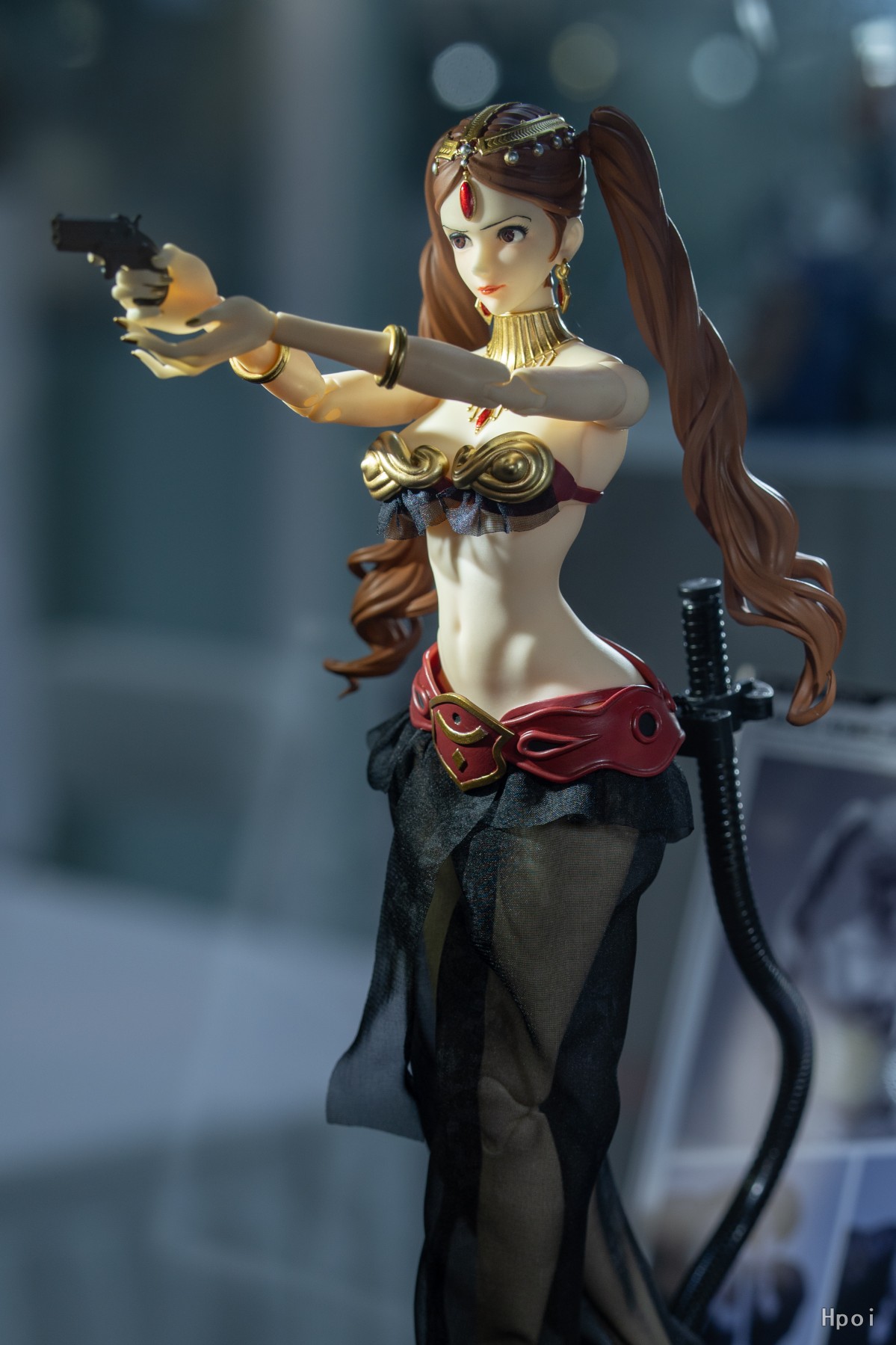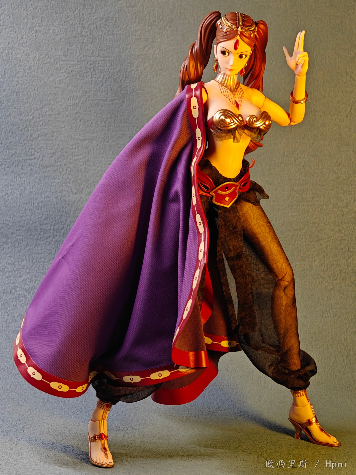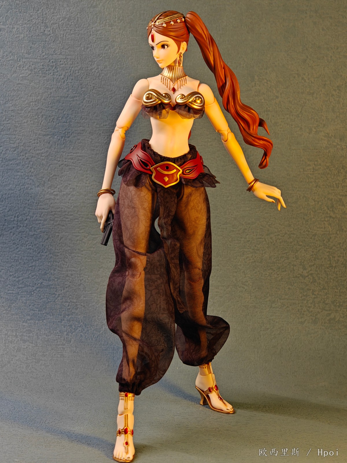 1.全身多处可动位点,发辫增加可动关节。2.可动眼设计,阻尼顺滑,眼珠多层次上色,太阳纹刻画细腻清晰。3.裤子印有暗纹,头巾边缘内嵌铁丝,随心堆折美丽造型。