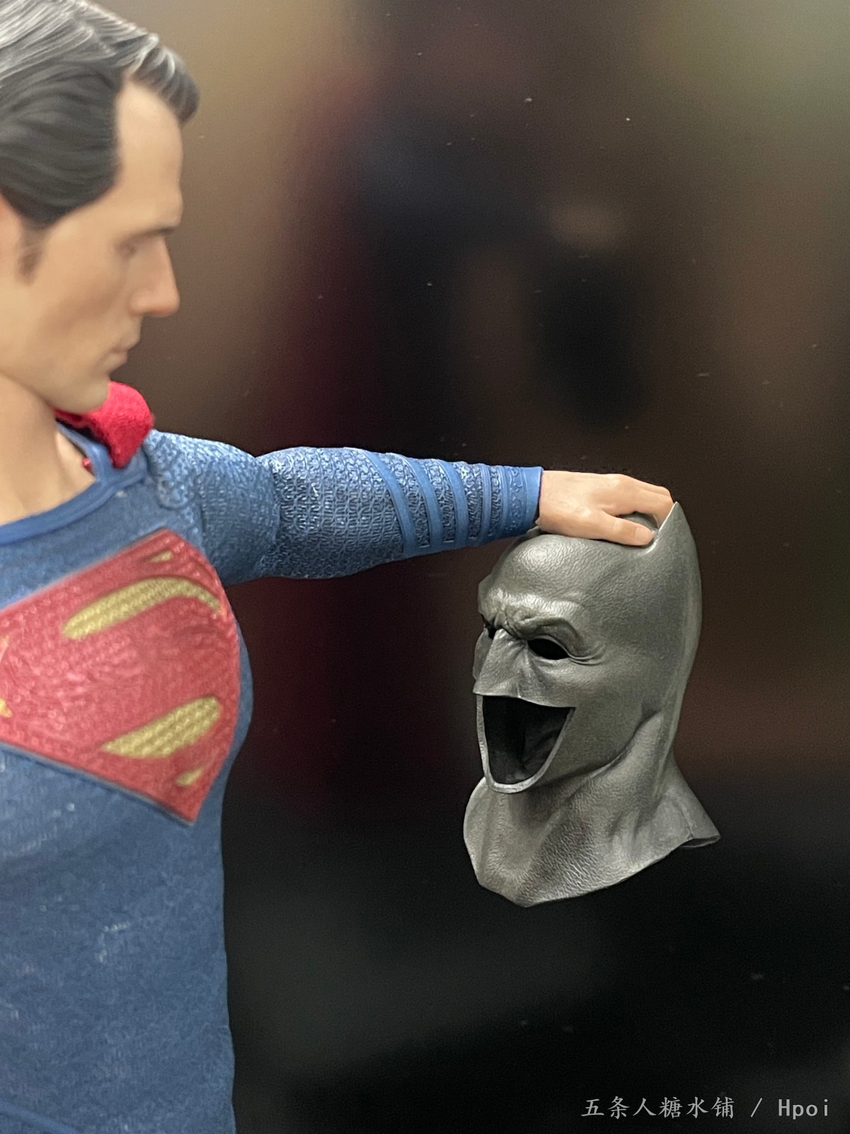 作品配件:INART可动素体*1,可动眼胶发平静头雕*1,可动眼胶发植刘海愤怒头雕*1,战衣*1,靴子*1双,造型披风*1,垂感披风*1,自然手手型*1对,握拳手手型*1对,张开手手型*1对,捏握手手型*1对,握持手手型*1对,左发力手手型*1,蝙蝠侠面罩(搭配造型手型)*1,氪石*1,氪石榴弹*1,氪石长矛*1,拍立得照片*5,亚克力支架*1,地台石板替换件*1,磁吸地台*1