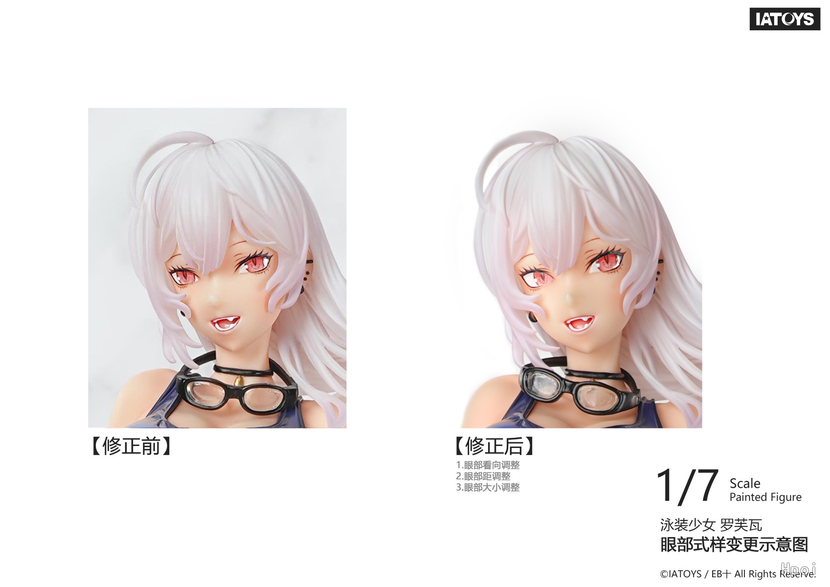 ※对角色眼部细节进行修正。1.眼部看向调整;2.眼部间距调整;3.眼部大小调整。