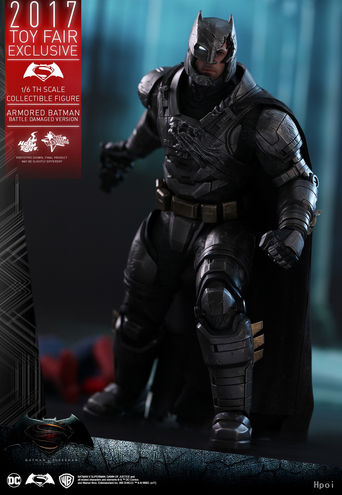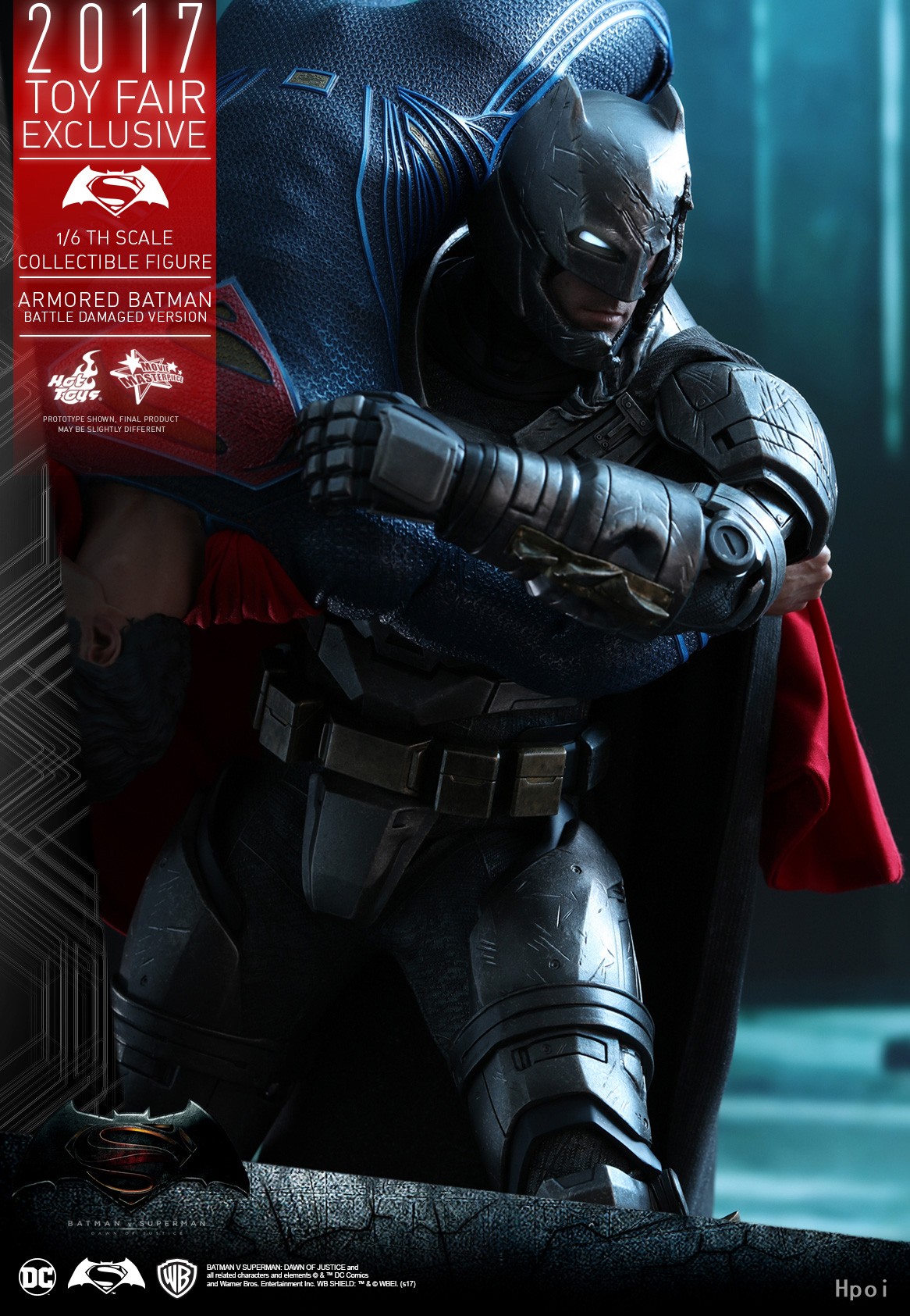 《蝙蝠侠大战超人:正义黎明》装甲蝙蝠侠(战损版)1:6比例珍藏人偶产品特点: