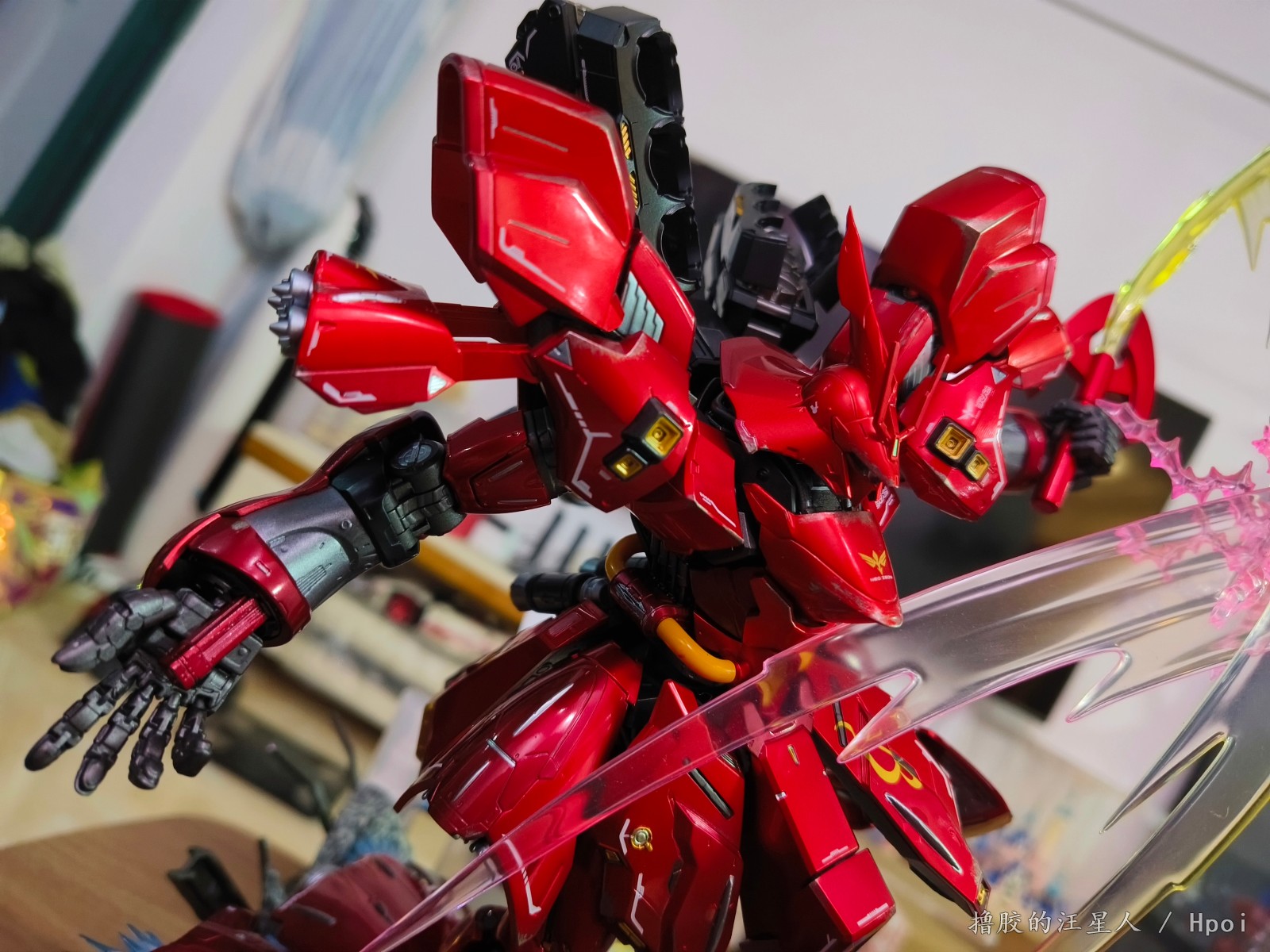 再现了的νGUNDAM用光束军刀刺向跳跃在空中的SAZABI的著名场景。