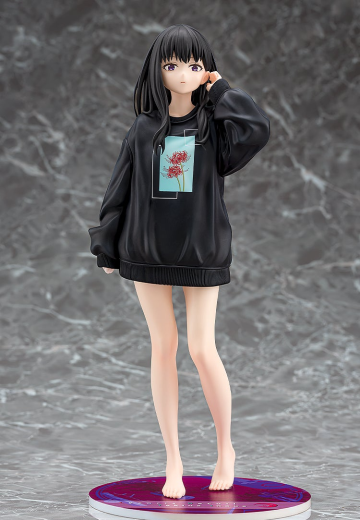 出自電視動畫《Lycoris Recoil 莉可麗絲》,「井之上瀧奈」化身為1/7比例模型登場。以第2集的過場插畫為主題,將身穿Oversize運動衫且目光堅定無懈地注視著這邊的姿態製成模型。配件還附「槍」零件,敬請以喜好的風格鑑賞。另外,本商品能搭配同日開放預購的「錦木千束 Oversize運動衫Ver.」(另售)擺飾,敬請將兩人一同帶回家吧。