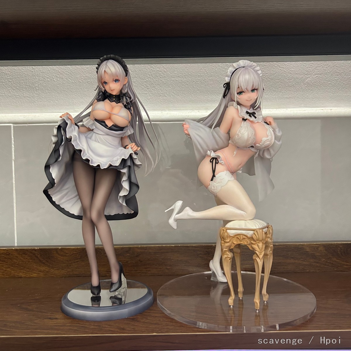 手办再现了插画当中温柔成熟的女仆姐姐辛西娅在行屈膝礼迎接归来主人的瞬间。特别的女仆装将辛西娅的上半身衬托得性感而丰饶,提裙礼下黑丝袜包裹的腿修长而秀丽,辛西娅凝视着主人的神情既大胆又略微羞涩,仿佛是女仆姐姐精心准备献给主人的惊喜——一切只为这一瞬间的至高视觉享受。