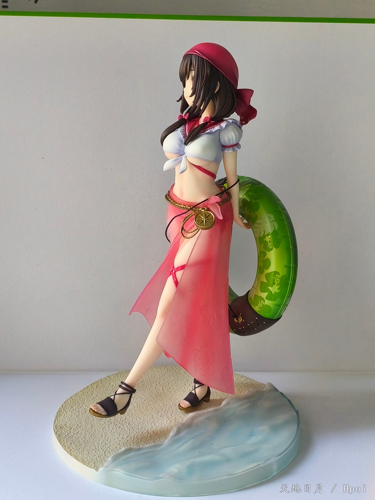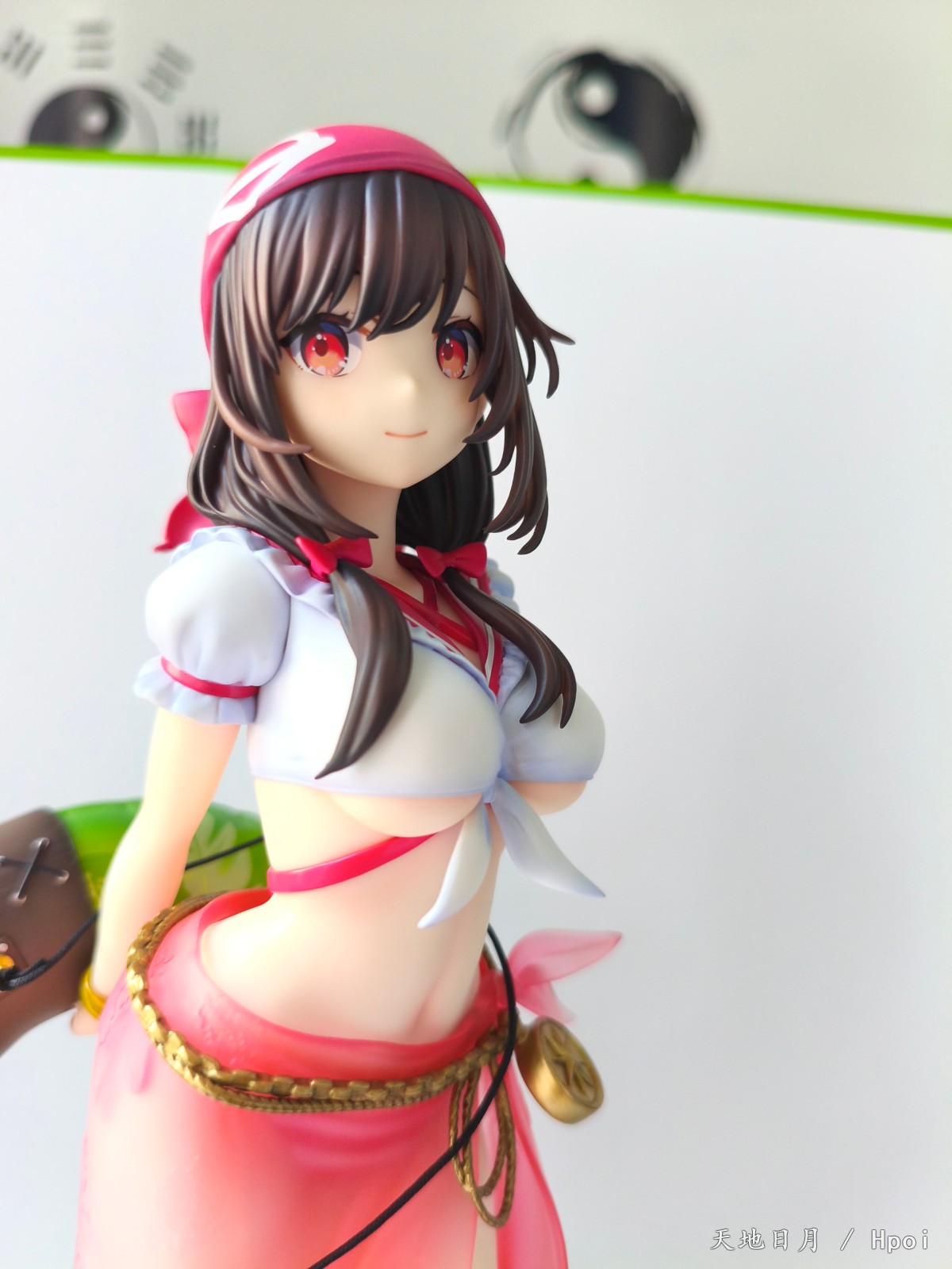 出自超人氣動畫《為美好的世界獻上祝福!》,大膽海賊裝扮的芸芸化身為模型登場!以「海邊的COSPLAY祭典」為主題,重現三嶋Kurone所繪製的插畫。宛如海賊部下般的頭巾,以及一身大膽的水手泳衣為她出眾的身材增添魅力。以透明素材展現海灘沙龍巾的透明感。用講究的塗裝手法重現塑膠製救生圈、皮革製吊帶及金屬製腰鍊等小配件的質感。搭配上惠惠 海邊的COSPLAY ver.,那就結成了一支超可愛超強大的海賊團!將盡情享受夏日海灘的芸芸帶回家鑑賞吧!