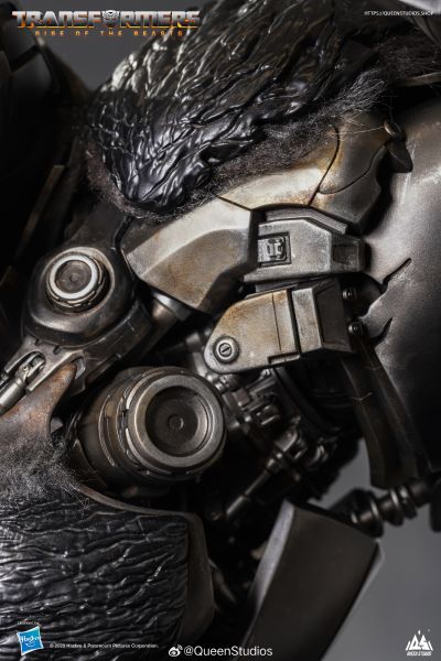 猩猩队长全身像高度为82cm, 适配 经典变形金刚系列,猩猩队长的兽形态全身覆盖光滑而肌肉发达的体态,涂装极具金属质感,而在它肩甲、肘部与胸甲的位置,涂装为皮革样式,并加以厚厚的乌黑皮毛,突显出了复杂机械结构与动物形态设计的完美结合,高高跃起的勇猛姿势,凶狠的面部表情也展现了它的非凡力量,加上眼睛与嘴巴的灯效点缀,完美还原电影中猩猩队长的独特外观。