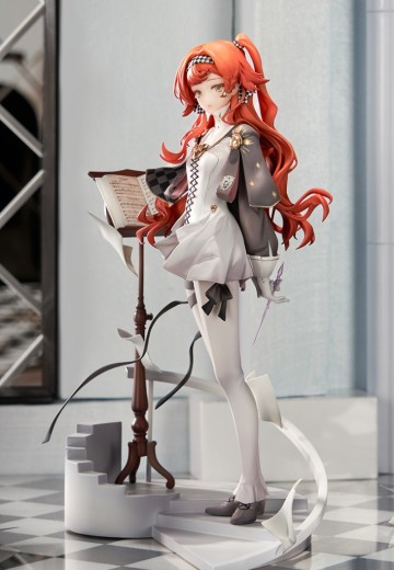 十四行诗驻足回眸,发丝间的菱格发带,肩旁奖章缎带上的基金会纹章也被立体呈现。流淌着优美乐章的乐谱正被风轻轻吹动,她手握透明玻璃笔,静静站立,优雅如诗。