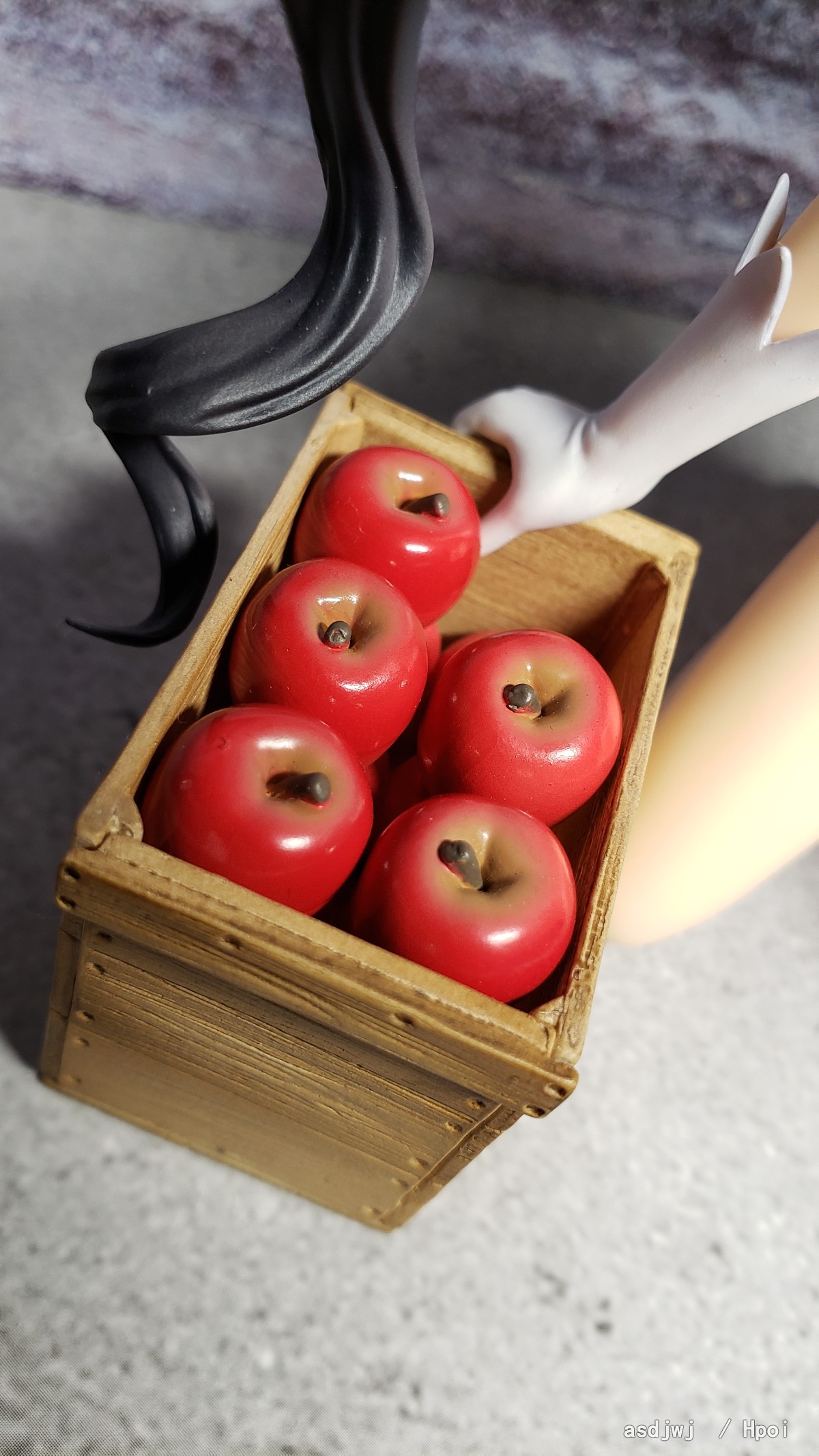 手元の箱の中には果実がぎっしり!!真っ赤な果実を手にしてこちらを見つめ、一緒に食べよう!という無邪気な声が聞こえてきそうです。