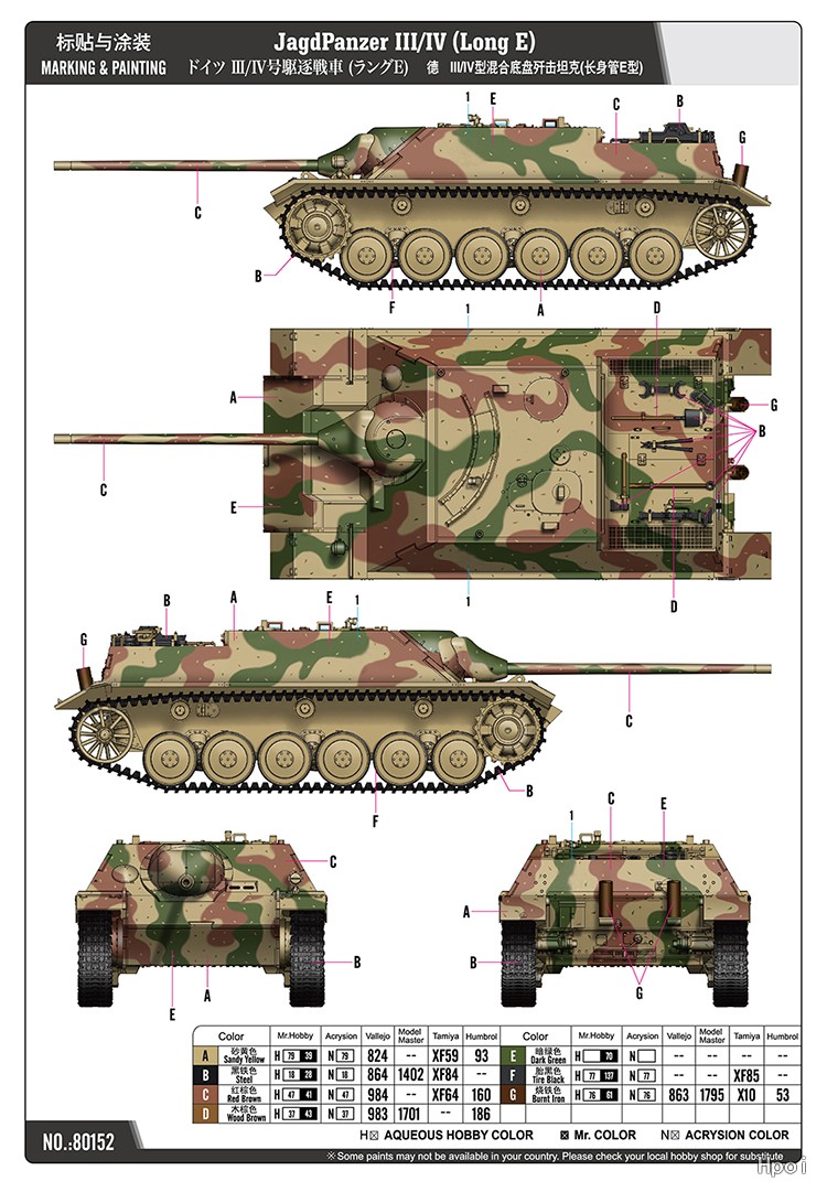 中文名称:编号:80152 1/35 装甲车辆系列 德III/IV型混合底盘歼击坦克(长身管E型)