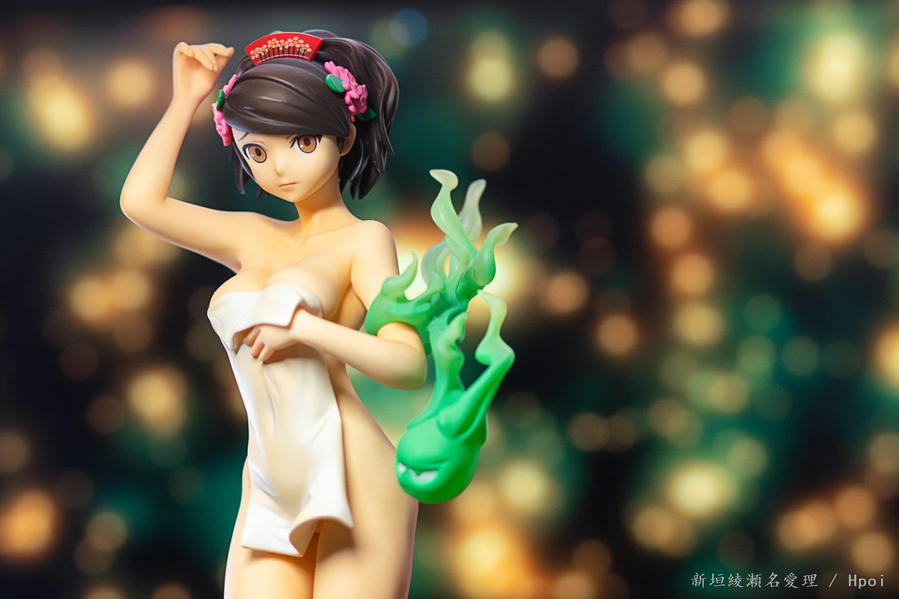 温泉を思わせる岩場風の台座や髪飾りなどの細かな装飾品、腕にまとわりついた“陣九朗”の魂も、作品性を見事に高めています。