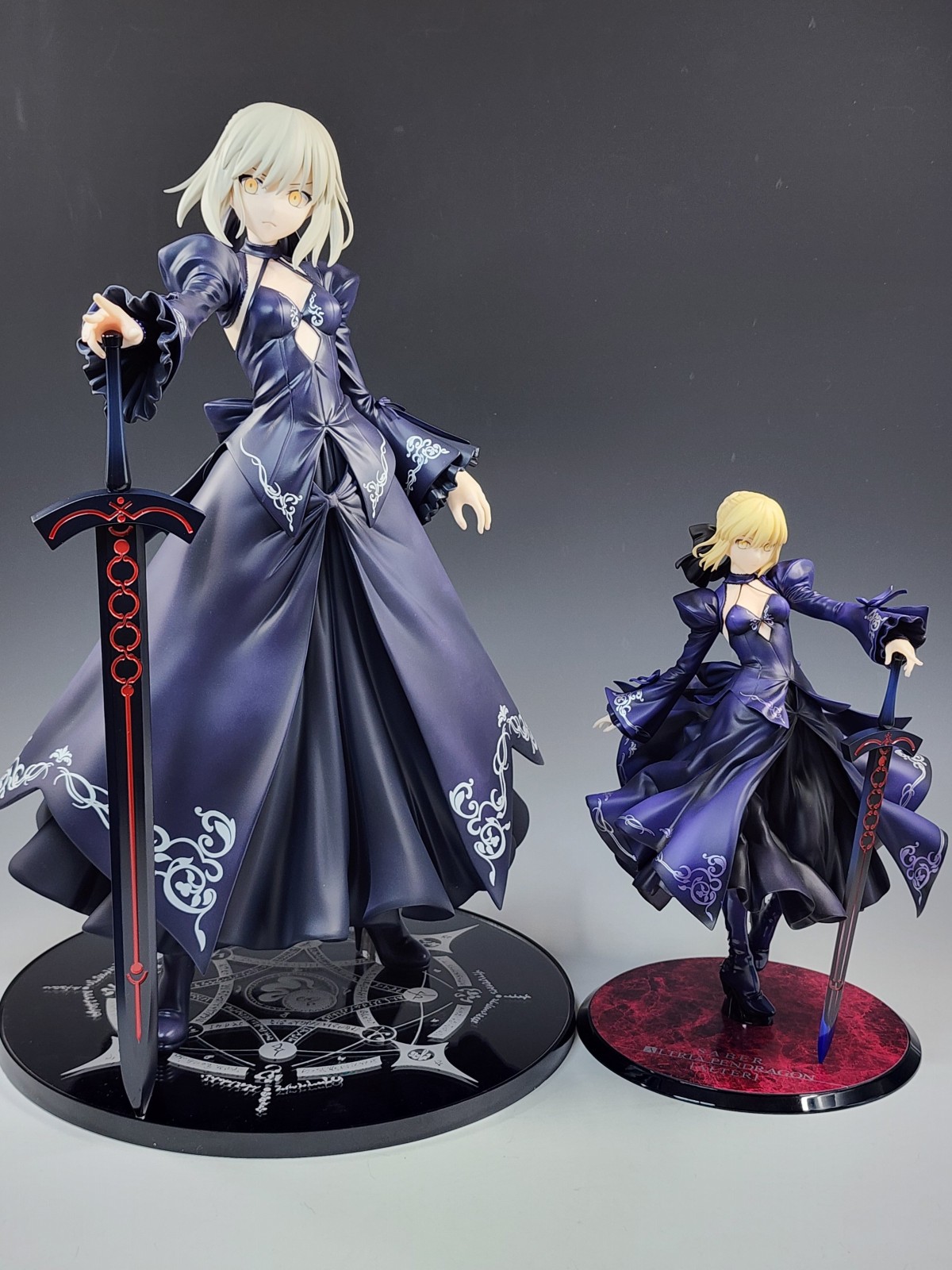 出自《Fate/Grand Order》,「Saber/阿爾托莉亞‧潘德拉剛[Alter]」化身為1/4比例模型。美麗又令人感到畏懼的騎士王,以壓倒性的分量感重現。還有染黑的誓約勝利之劍(Excalibur)。附刻印在透明材質上的召喚魔法陣。敬請細細鑑賞大比例獨有的氣勢和細緻的造型。