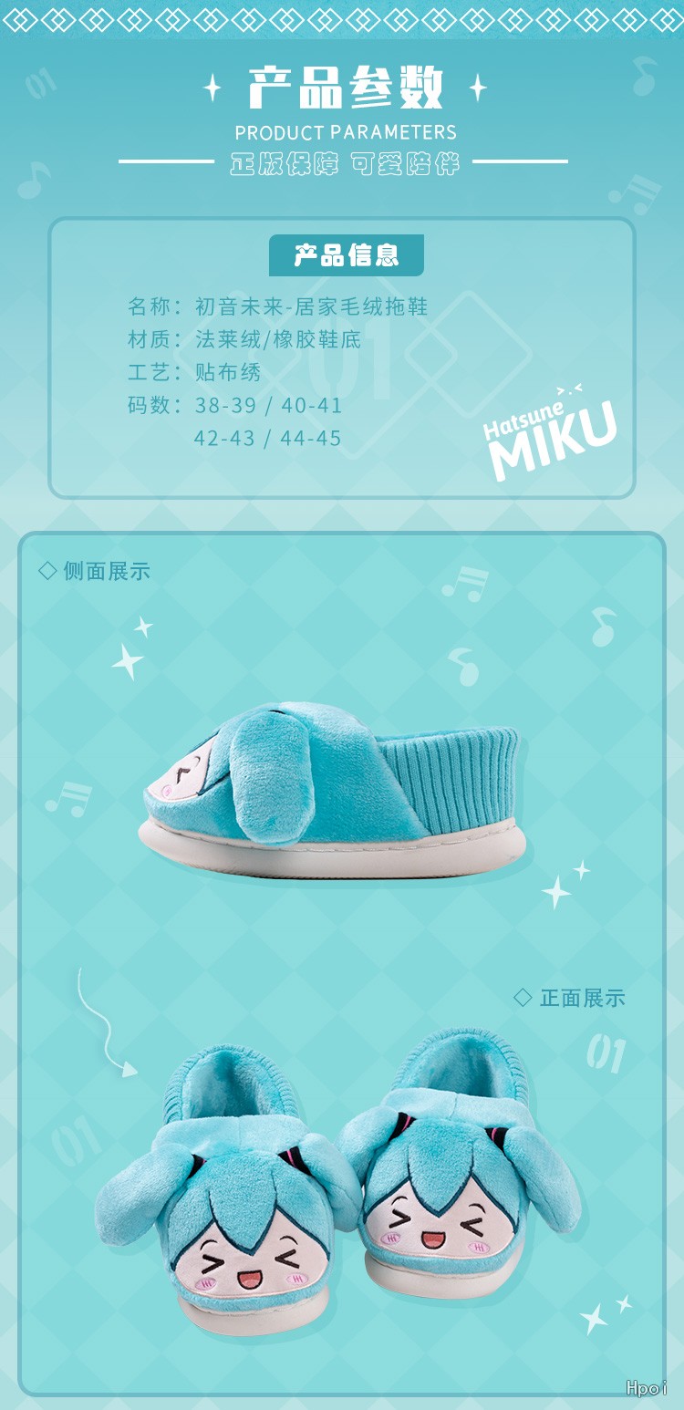 中文名称:初音未来快乐居家系列 毛绒拖鞋