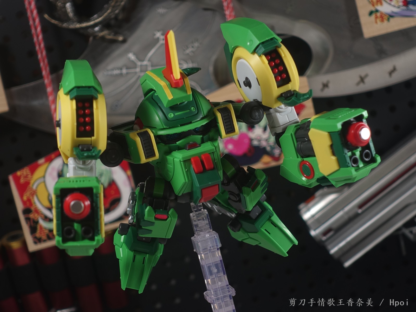 该款拼装模型全高12CM,宽15CM,拥有驾驶舱展开功能,附带驾驶员陆小果本尊,“爱果者导弹”独立分件,还原经典必杀技。