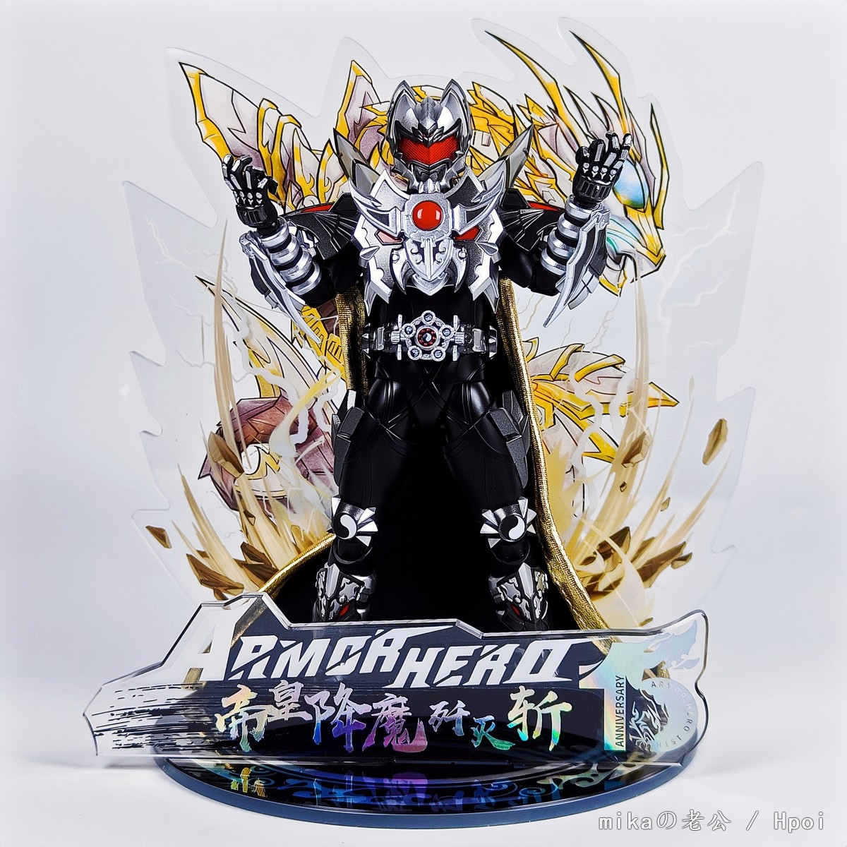 配置内容: 黑暗帝皇侠主体x1 极闇剑x1 极闈盾x1 帝皇战戟替换件x1 磁吸终极黑暗帝皇铠甲胸盾x1 终极黑暗帝皇铠甲手甲替换件x2 替换手型x5对 暗黑五行特效卡x5 暗黑五圣必杀特效卡x5 专属地台x1 卡片支架x5 说明书x1