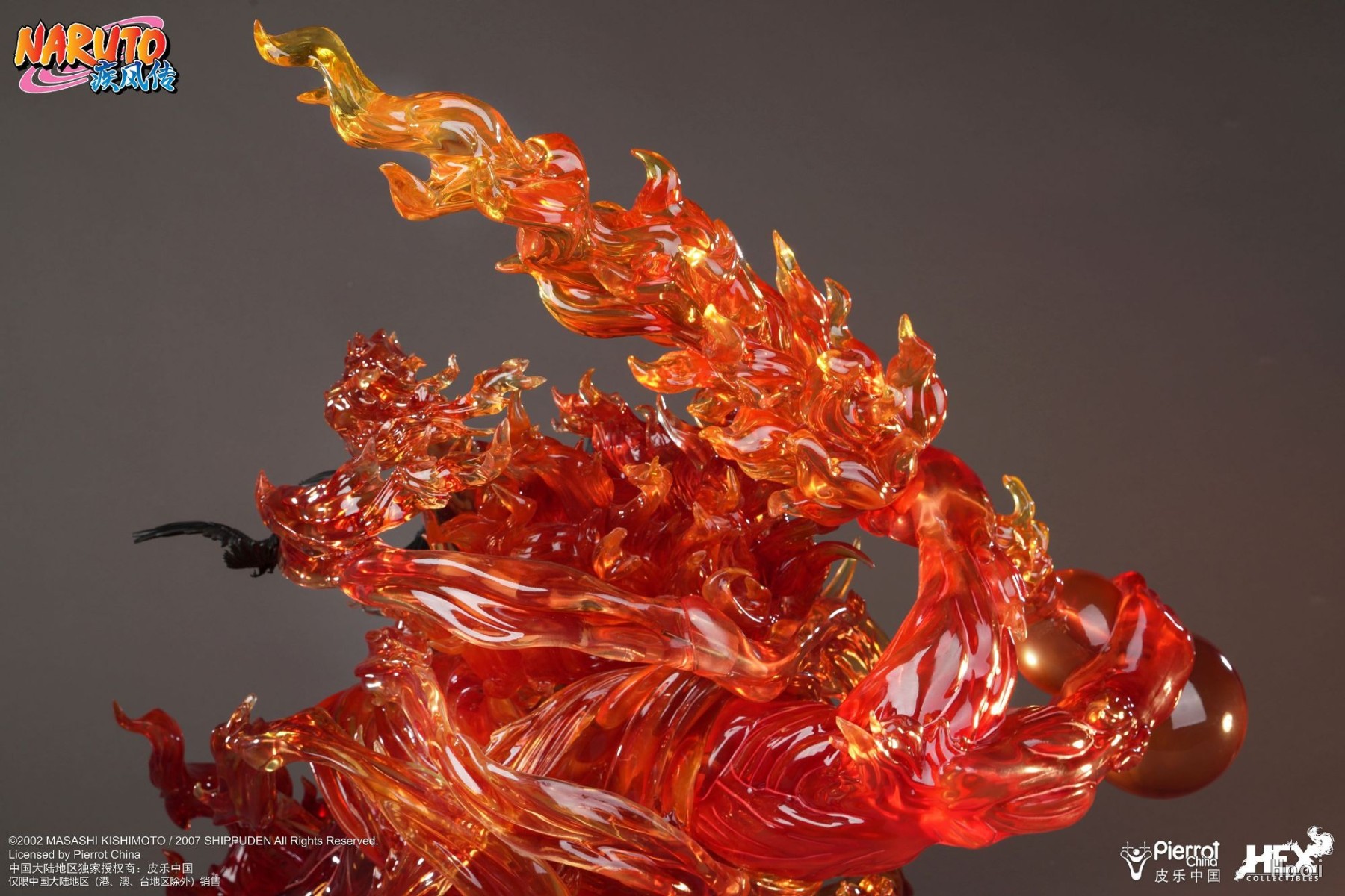 查克拉火焰从地台碎石中溢出,内置LED灯映射出燃烧的火焰光效,营造出激烈的战场氛围,仿佛要将观者置身于战斗之中,身临其境感受须佐能乎无与伦比的魄力。