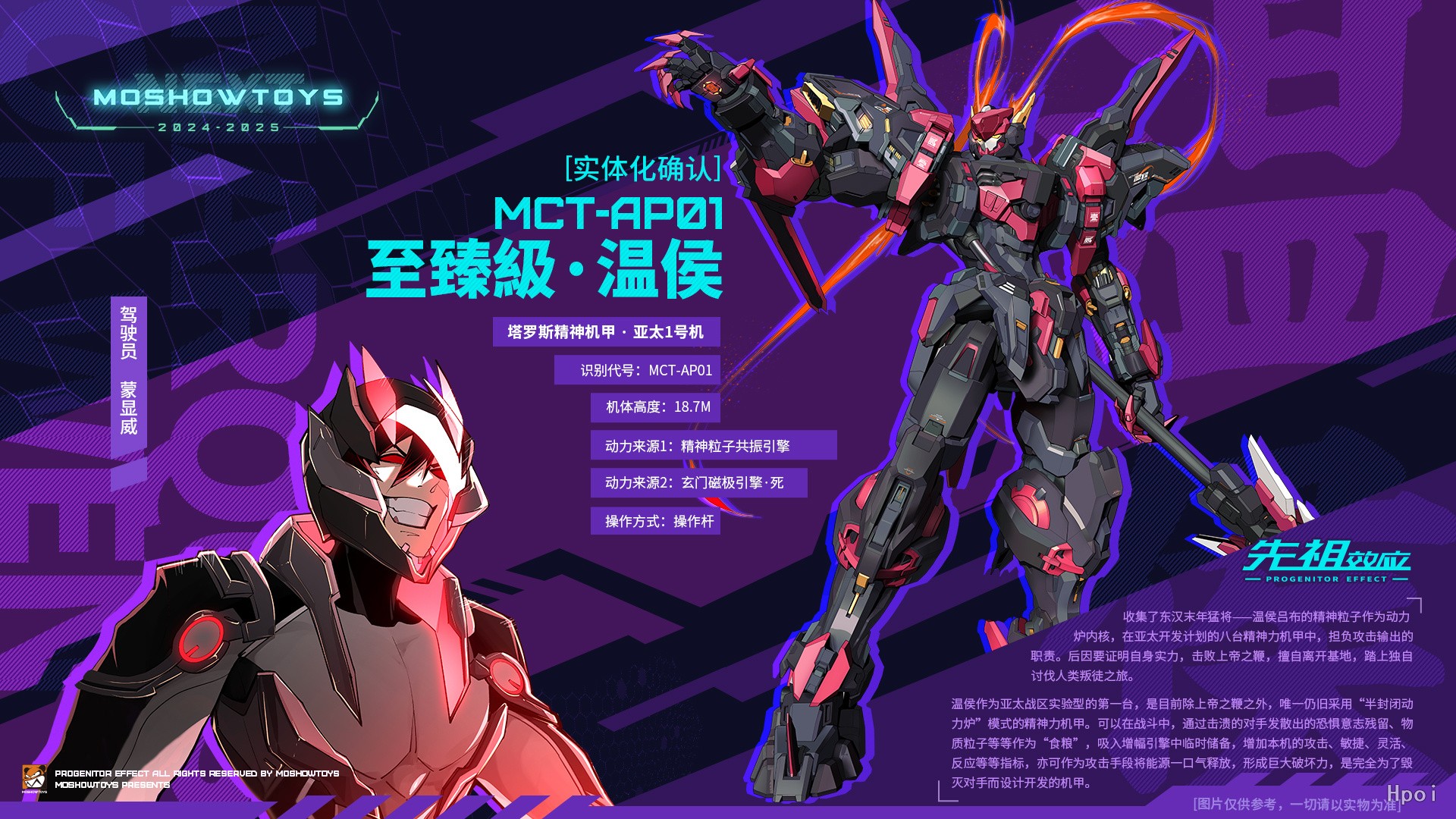 字奉先,号称“飞将”#MOSHOWTOYS #至臻级系列第九款正式确定!原创漫画#先祖效应#隶属亚太战区精神机甲1号机,已公布漫画设定中呼声最高的机体,机体识别代号:MCT-AP01 温侯 实体化确定!