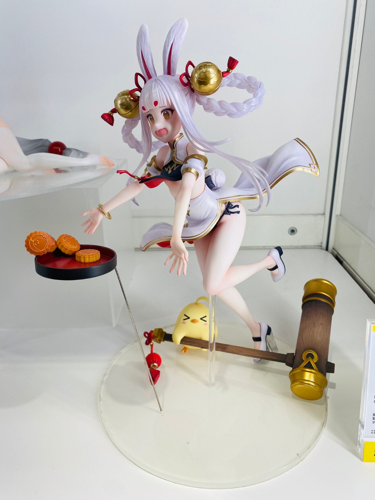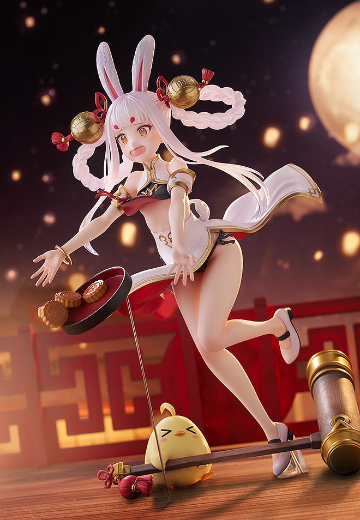 出自人氣遊戲《碧藍航線》,重櫻陣營的「島風」化身為1/7比例模型。 以「慌慌張張的玉兔」為主視覺,在月光下月餅掉落時,將慌亂的島風,可愛的瞬間製成模型。 以旗袍為基底的服裝大膽改造,搶眼的銀色髮辮上搭配金色大鈴鐺,重現出輕盈且充滿躍動感的造型。 而島風腳邊試著拿起巨大杵子的饅頭,同時為故事性增添了生動有趣的要素。 此外,配件附有「笑臉」,敬請以喜好的風格鑑賞。