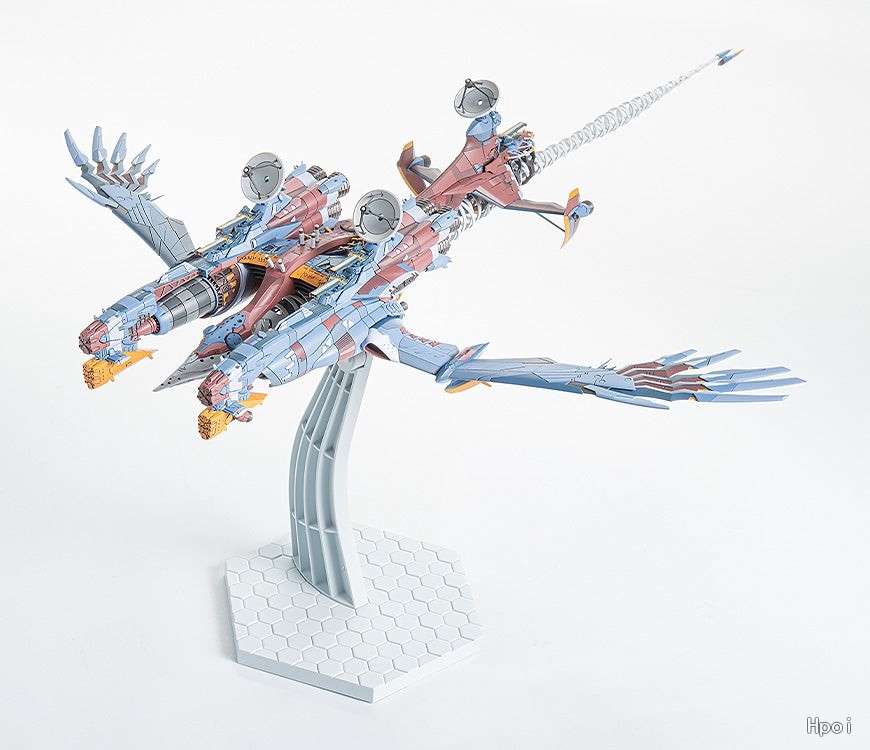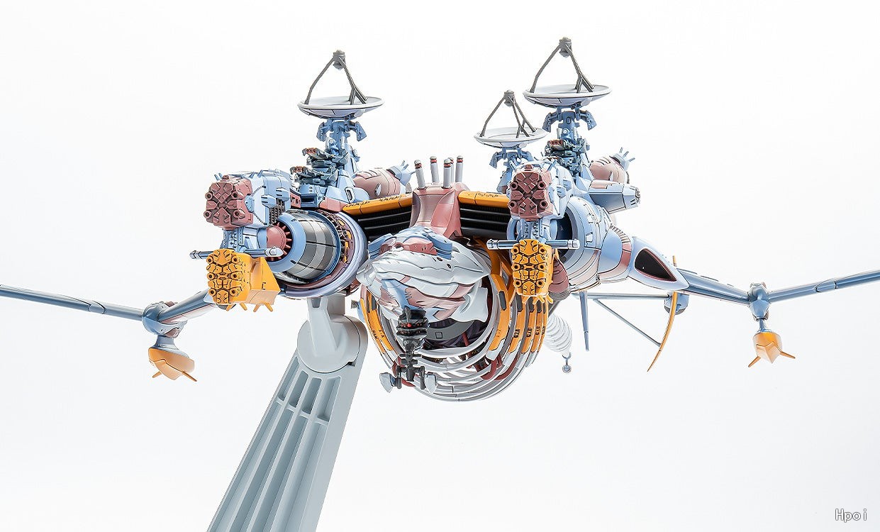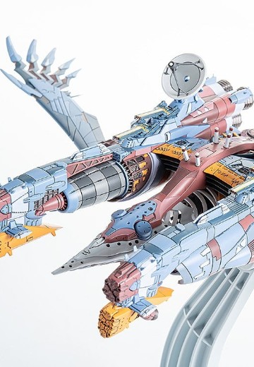 出自動畫《新世紀福音戰士新劇場版:終》,WILLE的旗艦「AAA Wunder」化身為組裝模型。・全長約509mm、全寬約206mm的震撼造型,凝聚了細節精緻的黏合式組裝套件。・透過9種成型色,組裝起來便能重現近似劇中的樣貌。・主砲和天線為可動式。・宛如肋骨般的白色結構體、複雜的管線與被其包覆的主機樣貌都能一覽無遺。・專用展示台座可選擇「水平飛行狀態」和「伴隨深滾轉切入L結界境界面的狀態」。・主翼與左右機身採用完成後也可拆卸的結構,是考量到展示與搬運的設計。特典:天線支架細節強化用蝕刻零件