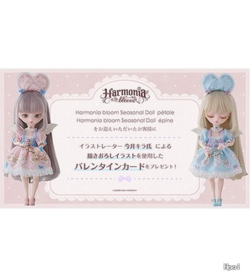 推出加入季節或是世界文化元素的特別樣式人偶「季節系列」。第五彈為心動不已二月的可愛活動「情人節」登場。由深受少女們支持的超人氣繪師今井Kira擔任人偶設計,愛的天使épine與pétale誕生。服裝設計為vanilatte的Rico*,彩妝設計則為雨蘭,展現出可愛的妝容。原創玻璃眼珠為淺綠色,讓人聯想起今井Kira繪製的少女。虹膜及瞳孔的尺寸也全新開發。捲瀏海與公主造型的短髮也推出全新顏色。為附有優雅閃亮香檳金的弓箭與芭蕾舞鞋般的繫帶鞋之豪華樣式。 敬請將傳遞心動的天使們帶回家吧。 ※身體彩裝/眼睛為épine及pétale共通的樣式。指甲顏色各有不同。 【商品內容】 ・人偶本體 ・玻璃眼珠 ・假髮 ・髮箍 ・頸鍊 ・連身裙 ・褲襪 ・弓箭 ・翅膀(可動式) ・鞋子 ・手掌零件 ・替換用腳掌(平放) ・專用台座 ・專用被單