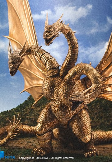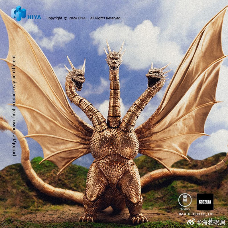 全新EXQUISITE BASIC系列王者基多拉可动手办将哥斯拉VS王者基多拉(1991)片中造型立体手办化,还原当年电影戏服配色,捕捉其基多拉展翼威吓的魄力姿态。全身细节精细刻画,再现怪兽生物感,眼神凶猛凌厉,肌肉骨骼、翅膀鳞片等细节均一一还原,让您感受来自王者基多拉的极致压迫感。