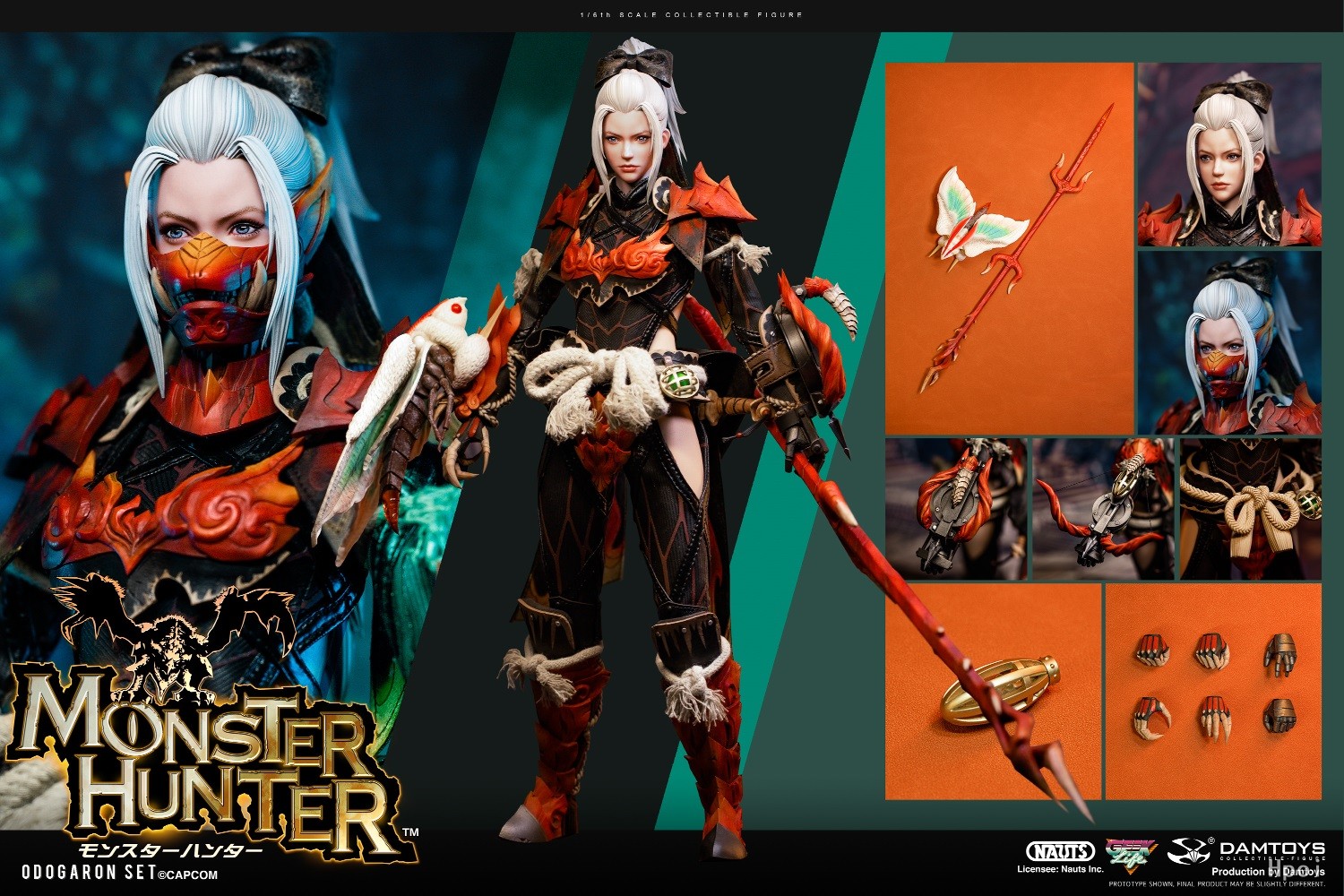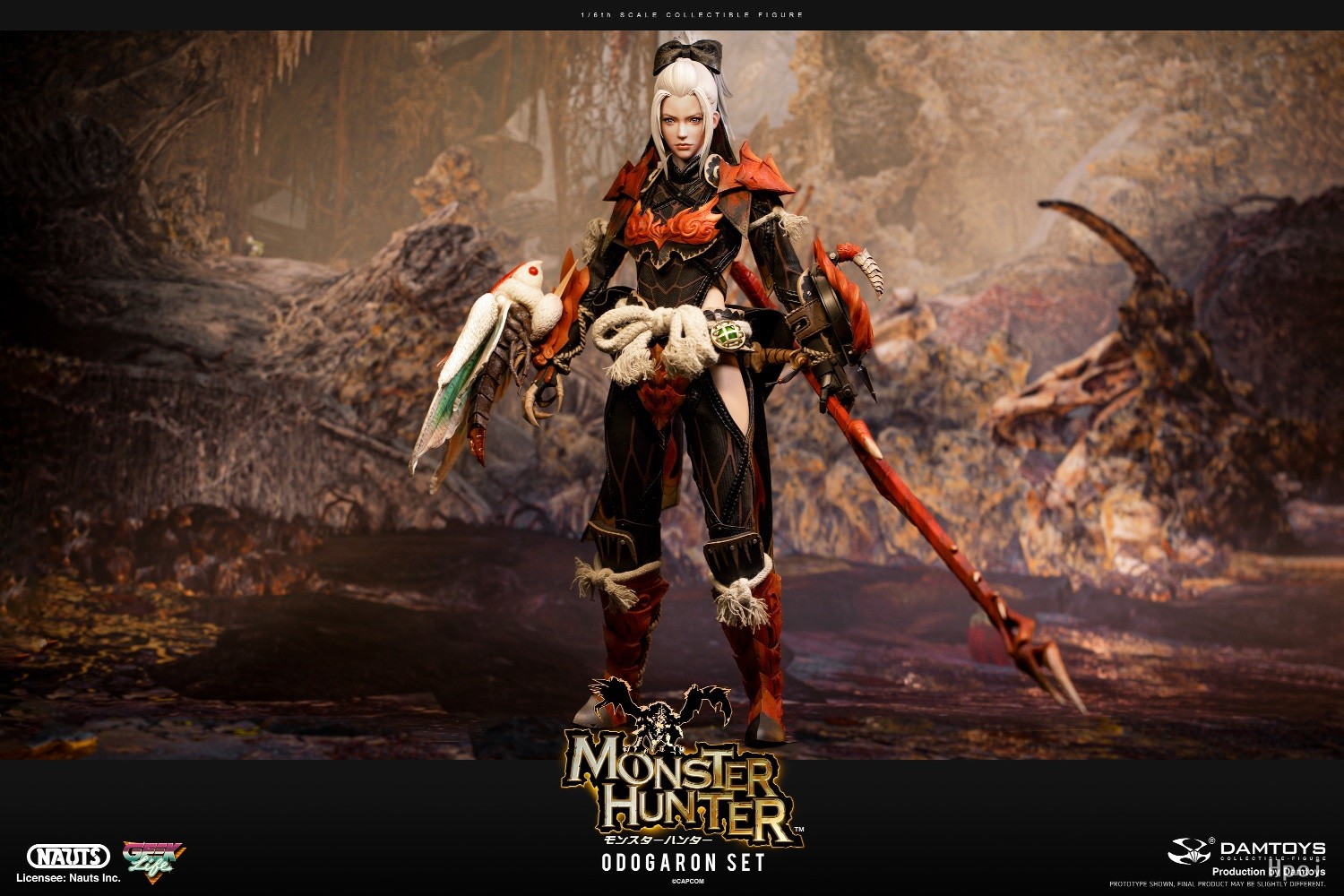 NAUTS x DAMTOYS合作推出喀普康人气游戏《Monster Hunter》1/6比例珍藏人偶—— 惨爪龙套装。该套装源自2018年的高人气作品《Monster Hunter: World 》, 是以高人气怪物惨爪龙的素材制作而成的装备。