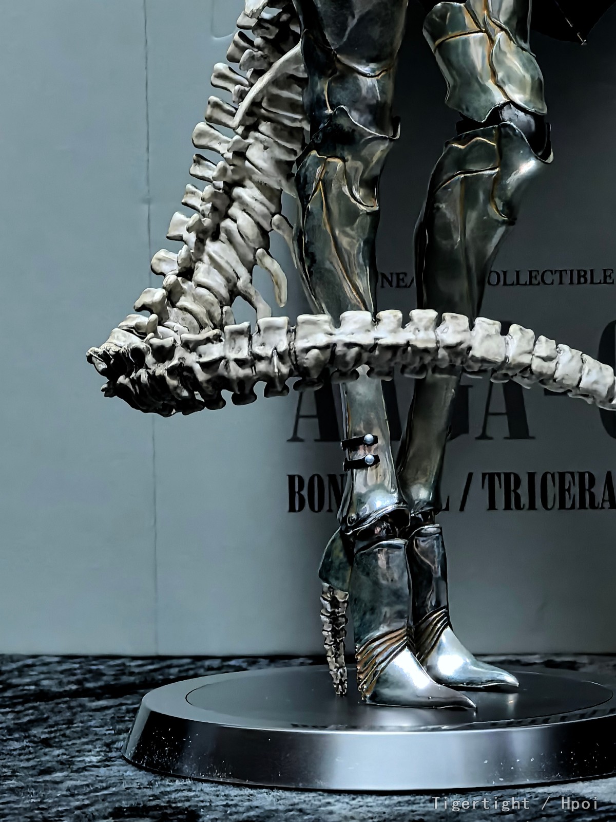 BC在实物化过程中,基于UV素体,调整了比例。素体下半身采用合金打造了腿与腿甲一体的可动腿与高跟鞋。在刻画铠甲细节的同时,还原了原型半仿生物的写意风格。