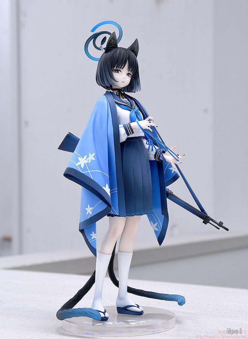 出自人氣遊戲《蔚藍檔案 Blue Archive》,所屬於百鬼夜行聯合學園,百花繚亂紛爭調停委員會的作戰參謀「桔梗」化身為比例模型。 忠實重現平時冷靜分析情報的冷酷表情與凜然的站姿。 玩翻繩遊戲的細緻指尖、可愛的耳朵和分叉的尾巴,以及愛用的狙擊槍(百花繚亂制式步槍-紺碧的智慧),質感非常講究且細節也精細造型。 另外,知性而理性的氛圍以柔和的藍色為基調表現。 敬請將桔梗帶回家享受深情的一刻。