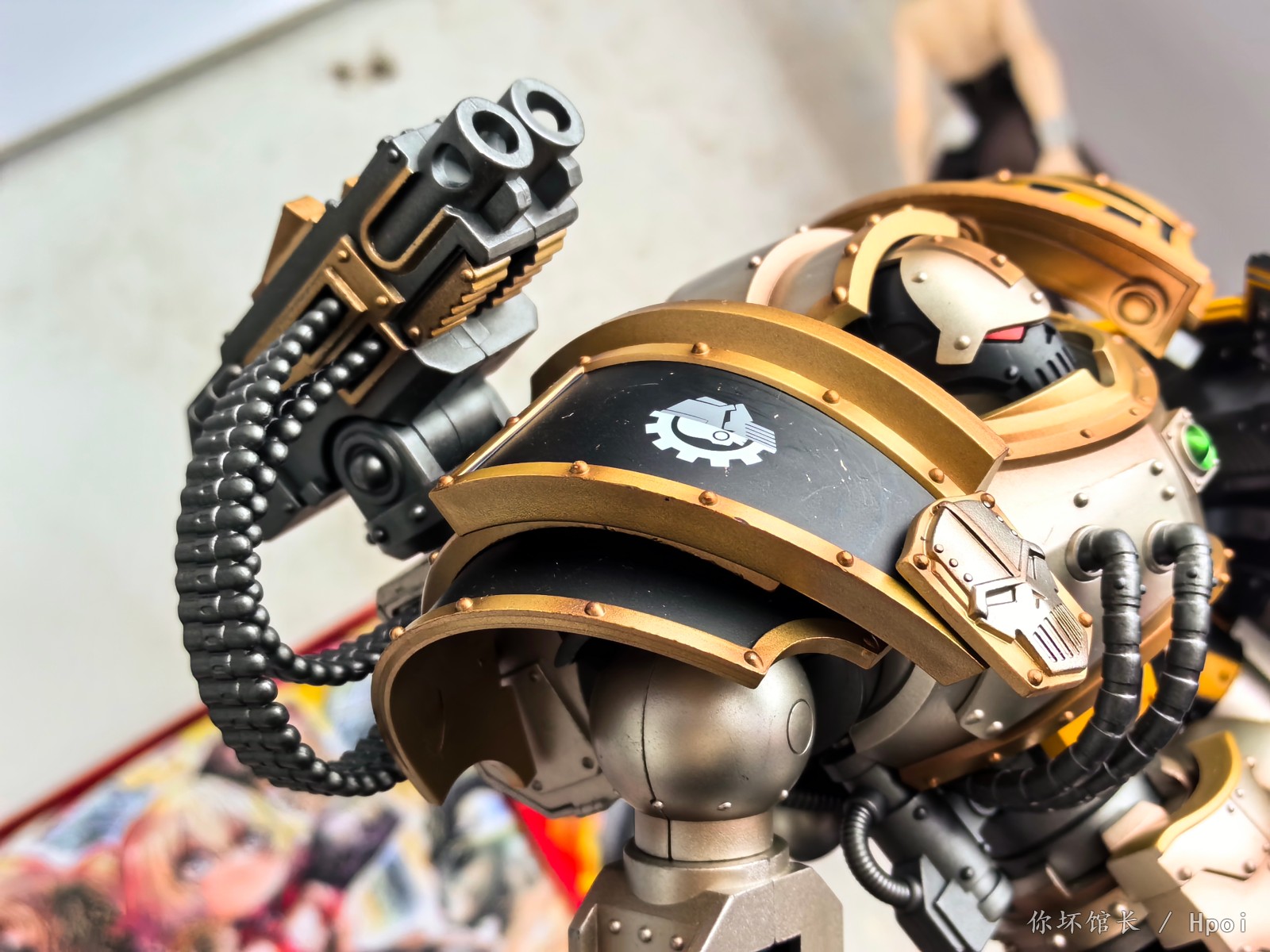名称: 战锤系列 “荷鲁斯之乱” 钢铁勇士 铁环多米塔钢铁级自动战斗机器人 配备卡彻锐型战斗盾和重力破碎锤
