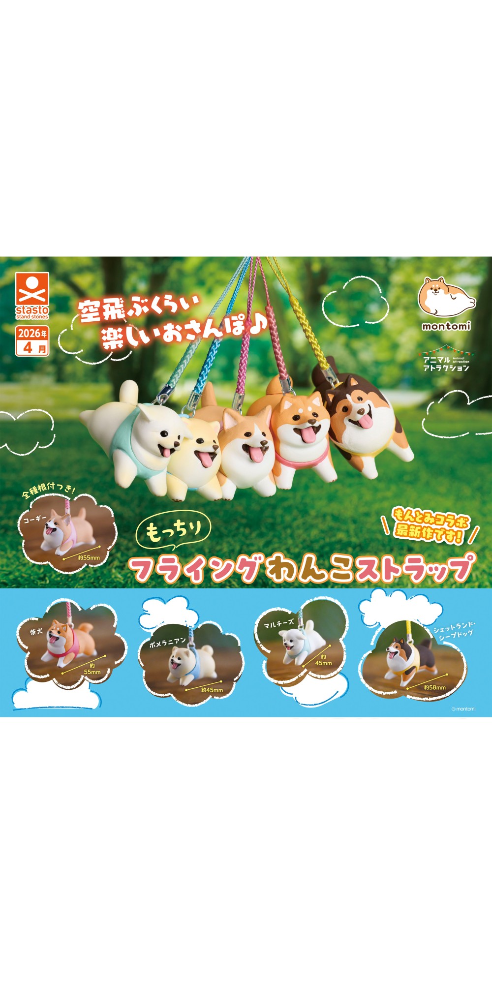 もっちりフライングわんこストラップ