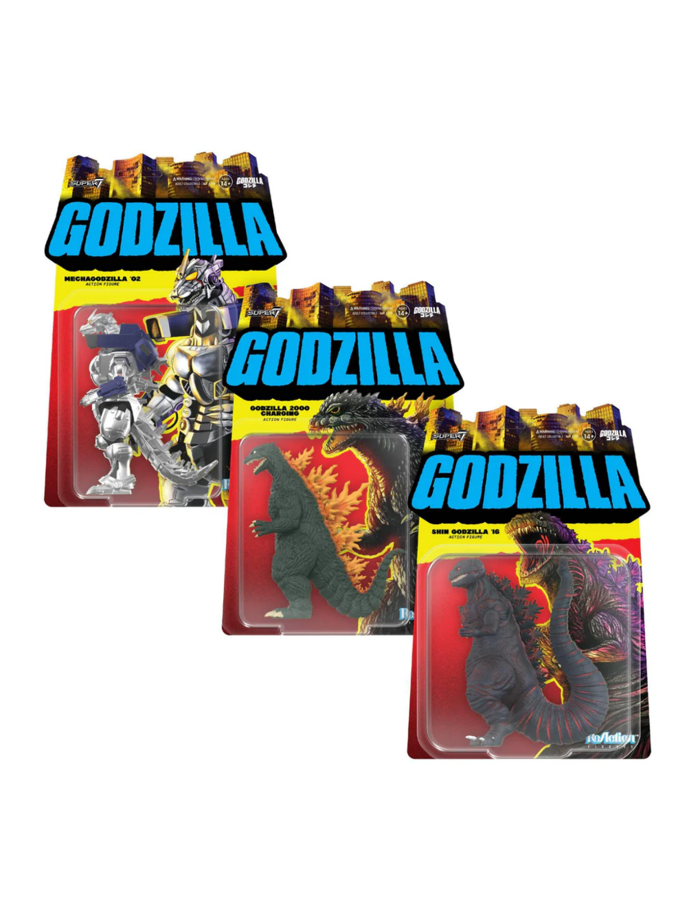 东宝可动人偶系列10 哥斯拉2000(蓄能版)、机械哥斯拉(2002)与新哥斯拉 Toho ReAction Figures Wave 10 Godzilla 2000 (Charging), Mechagodzilla (2002) & Shin Godzilla