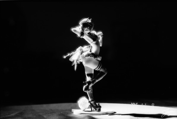 为了测试极限性能,特意使用束光筒单侧打光以达到极大的光比,当然得益于胶卷特性(这点在手记001中解释过)画面没有出现高光和阴影溢出。均使用F4.0光圈以提高锐度(老镜头缩光圈锐度提升更多)。为了排除生产批次不同导致的产品个体差异,使用同一卷胶卷进行拍摄——先使用美能达相机拍摄一部分,中途回卷,装入佳能拍摄另一部分。显然同卷胶卷冲洗条件也完全一致,在此不做赘述。