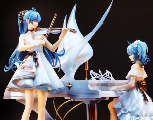 场景很大,占了一个床头柜。看似朴素的白色实则在表面加了闪粉,摸起来有细微颗粒感,裙摆在不同的打光下会反射出微弱的星光。 唱片是假的不能动,唱针可以上下掰动,钢琴非常的漂亮。单独看人物的话可能比不上纯白之恋那一款2233,但这款的重心是整体氛围的表达,人物和场景一起搭配组成完整的画面。 要是能有发声结构的话应该能加分不少,毕竟这么大的底座,完全可以把发声器藏在唱针的结构里面。