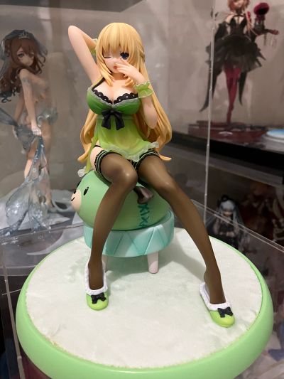 手办没什么问题,挺不错 特典是钥匙扣 右手手腕可以活动,不知道具体是什么作用 凳子有磁吸,能勉强感觉到 1比8比例卖800多,我觉得偏贵 不知道是不是设计有问题还是说就是配合起床的姿势设计的,贝露坐上去之后左脚比凳脚高,导致放下去之后大腿被抬起来,跟凳子之间有缝隙 最后,开冲!