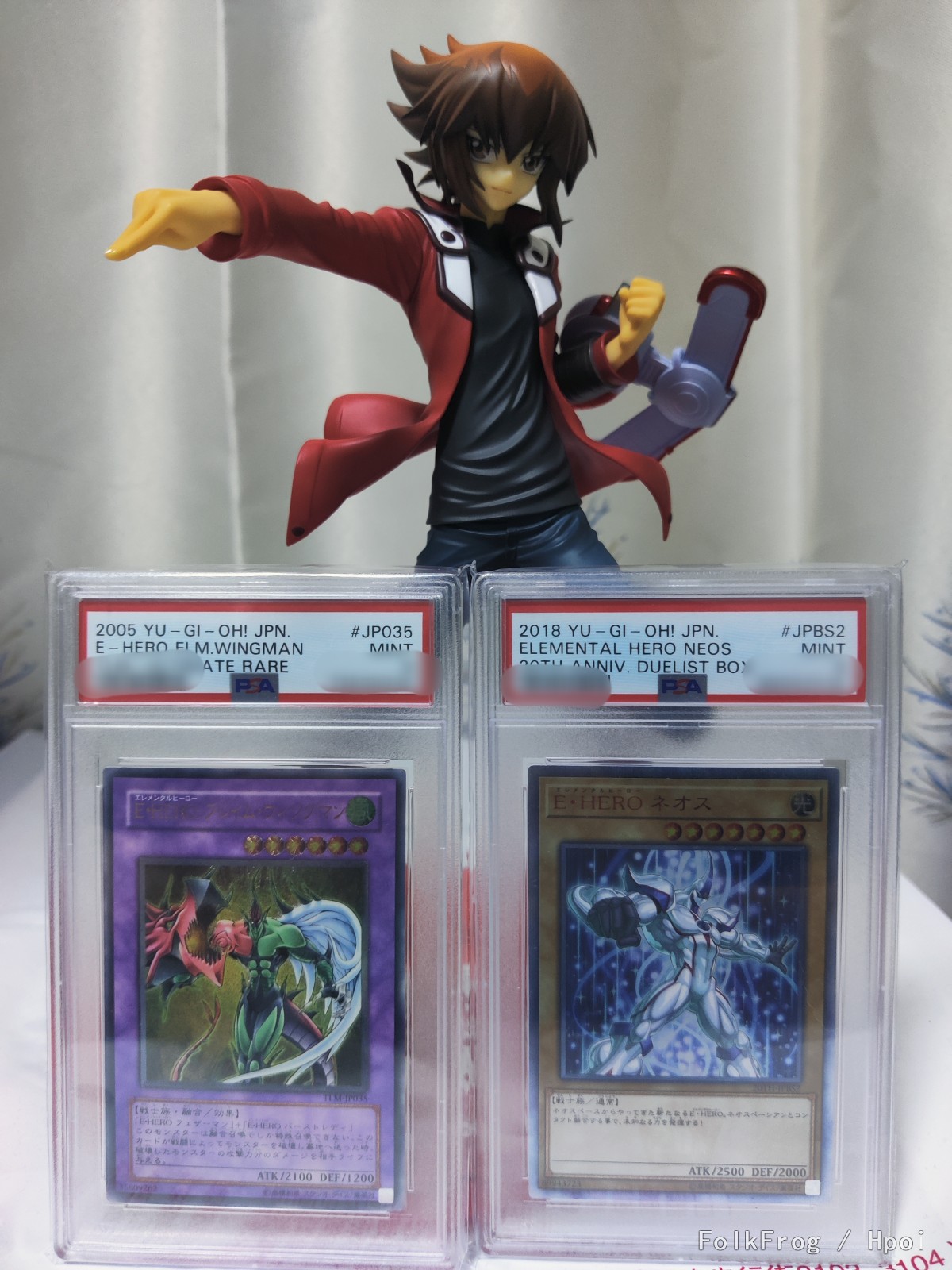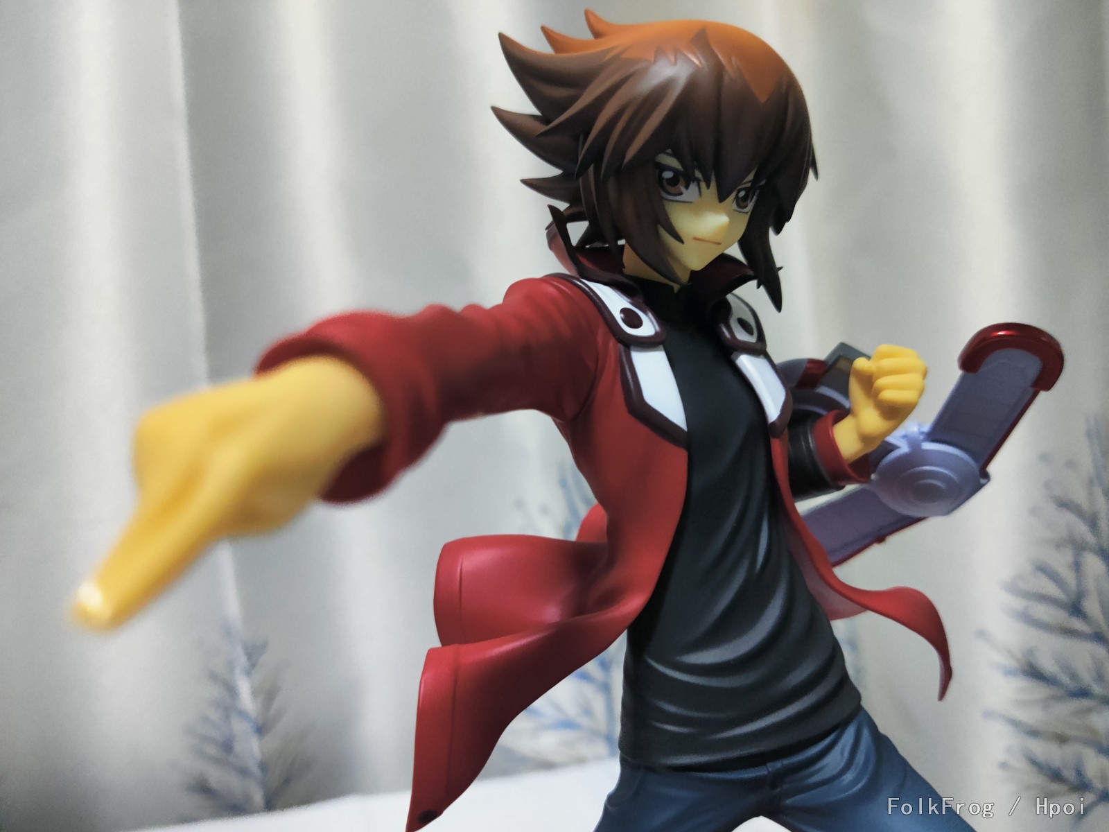 入坑两年,算是第一只正比例手办里我认识的角色,相比较其他游戏王主人公,还是最喜欢十代,和两个劳模卡摆一起浅拍一下。 双头雕,不是替换脸非常给力,替换手有两个,用来握住卡片,卡片细节简化可以理解,人物的阴影色很足,质感极佳,六张多一点的价格简直香爆了,但是脸明明正常,不知道手为什么这么黄,真的是蜡黄。