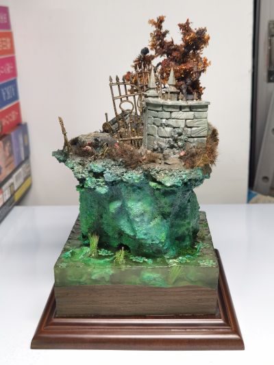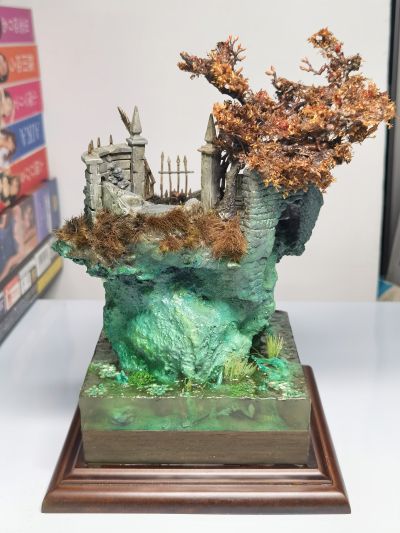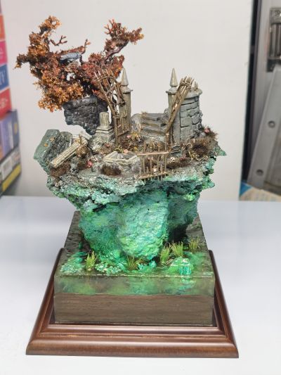 之前分享的泛着绿光的死亡之城的地台已经完成啦~下面就只剩几个床单的涂装了,这里就先和大家分享一下地台场景的照片吧~