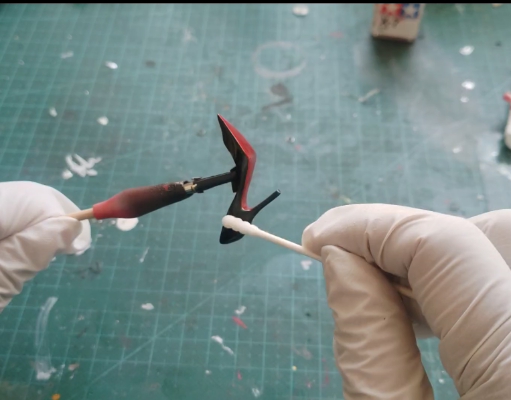 看了这款昂贵的代工费我决定自己入坑,做完发现几乎没有难度,有手就行,这里我分享一下我的思路: —— 首先修件打磨一定要细致,这最终决定了你成品细节,肤色用白补土打底然后用cl01+03漆就可以,面妆用水贴眼加面相笔稍微画一下眼线,然后喷消光消除塑料感,最后用uv胶滴一下眼睛制造水润感。 ——其次是裙子,用黑补土打底,然后喷正红色,薄喷多次,然后用消光消除塑料感,最后薄薄喷一层珠光红,这样灯光下裙子会反射有一种丝绸面料的质感,适合近距离观赏。 ——然后是头发,我个人还是偏向加红色挑染,就是精2的那个发色,因为是透明件,所以不要补土直接先在发根处喷一层蓝色再开始薄喷光泽黑,不想要蓝色就直接喷光泽黑,喷一层观察一次,达到你想要的透光度和质感,在内侧补红色挑染。 ——然后是高跟鞋,直接打磨光滑后上光泽黑,然后用红珐琅漆喷鞋底不用遮盖,再用x20把溢到鞋面上的红漆擦掉,再补光油 —— 最后是金属配饰,银色用镜面银,金色用臻彩金,用面相笔慢慢涂,有点耐心。 整个手办几乎没有任何难点,除了右腿也没用到任何遮盖,有那个找人代工的钱,不如尝试入坑玩玩,也挺有乐趣。 >>>最后特别提醒一下 入坑一定要注意安全 制作简易喷涂箱和通风环境 一定要带好口罩和防毒面具 狗命要紧 切记切记!!!!!