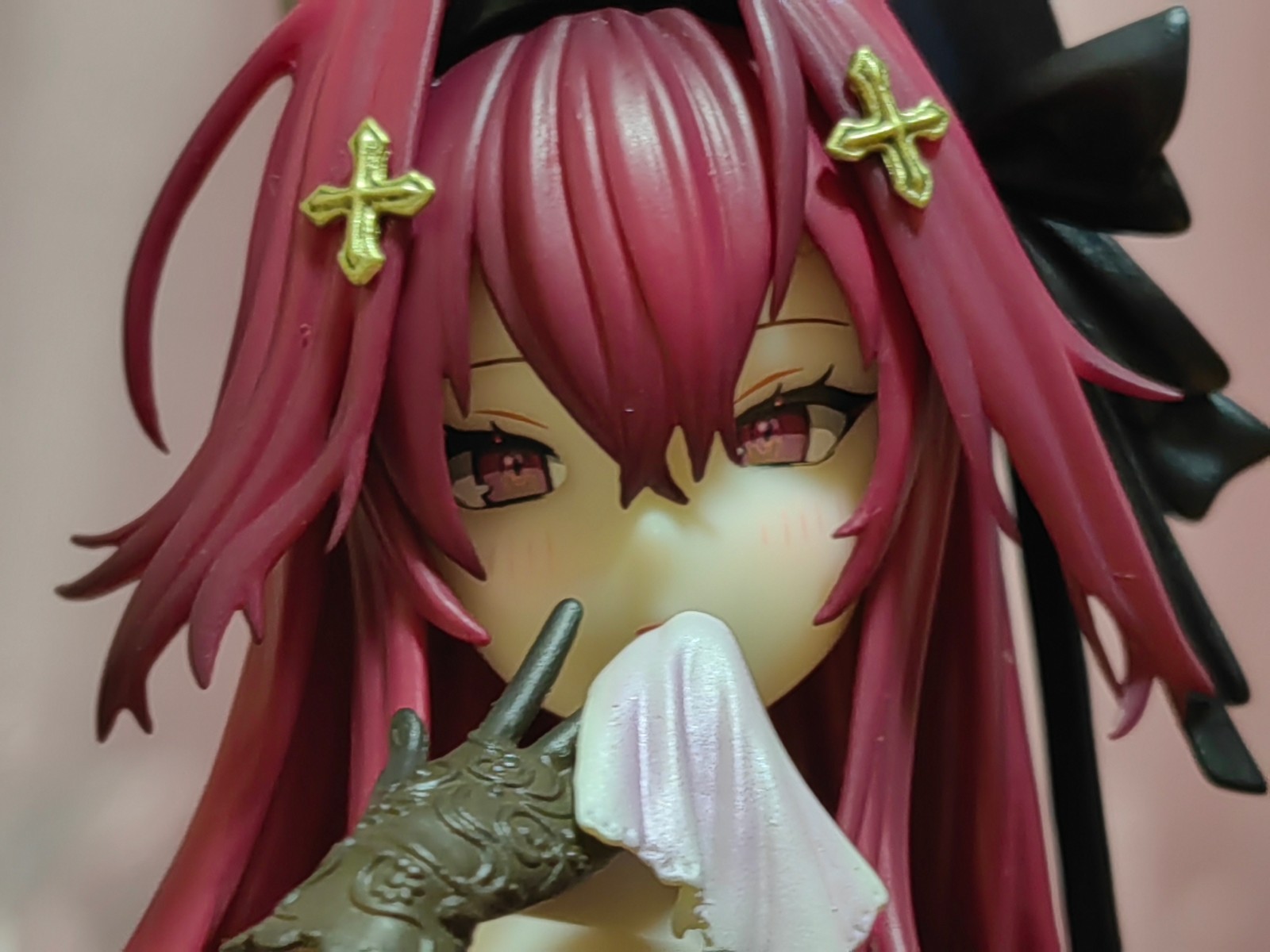 量产型和官图的面相差距还挺大的,肤色、腮红和眼睛水贴都比官图的要淡。 (图1)一开始以为是落灰了,结果用化妆刷一直扫都刷不掉才发现是中奖了。。。
