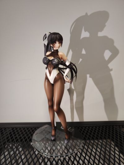 如其名字“至高焦点”,她确实抓住了我的视线,成为了我的焦点。我给她的主题是冷淡认真尽责高傲又自带神秘感。 1.面部:是该主题最明显的体现。 2.整体:最抓眼球的莫过于20D左右的微光深咖丝袜质地连体衣。收束肉体的同时,将小腿后肌群、大腿肌群、蜜桃臀、沙漏腰、小腹、北半球、锁骨、背部的肉体线条勾勒的淋漓尽致。 胯部、腘窝、臀线处的丝袜褶皱和颜色渐变,加上被胶衣和黑丝包裹的南半球上唯一的开放区域,让你可以从微观角度发挥想象,进入她的肉体和丝袜间的空间进行游走,你猜双球在看不到的地方是如何被温柔包裹的呢? 和深色连体衣形成强烈对比的白色深V赛车女郎制服,引诱着视线从上往下聚焦于天堂和地狱,一不小心就会沉沦难以自拔。 照片是想借用光和阴影来展现出身体线条和连体衣质感,点题:至高焦点。 3.想改进的地方:从南半球的地方可以看出这连体衣做的太厚了。实物的连体衣颜色是深咖,我还是更喜欢木shiyo原画中的颜色。 题外话:如何在物化和欣赏之间找到平衡点呢?总之,她很美。