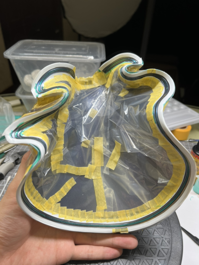 新手,模年前就修好了,拖延症拖到现在才做完😂。裙子颜色还喷深了。这个大裙摆真是要了我的老命,应该先喷金边再遮盖喷蓝色,结果步骤反了多做了不少遮盖,属实给我盖麻了。