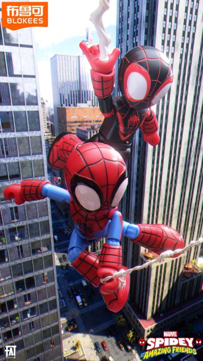 彼得帕克&迈尔斯,深度把玩了一番后真的非常喜欢,也有遗憾的地方,拿到手时是没有蛛网涂装的,整体看上去会显得非常平,但考虑到价格便宜而且算是偏向儿童的玩具这点其实不算什么大问题,自己涂了蛛网后整体观感瞬间上了一个档次,然后就是手型只有一只射蛛丝的替换右手,摆造型时动作会有局限… 其他满分!自己改了磁吸脚底,现在是满分的冰箱贴了哈哈哈
