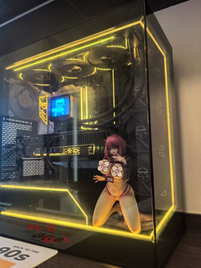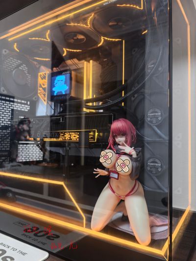 看了几个海景房机箱里面放手办的桌搭,突发奇想,这块正面玻璃看上去简直就是为压胸题材量身定做的。于是我毫不犹豫地跑去咸鱼收了一个辻中美穗。到货就迫不及待地试了试,效果的确惊艳。