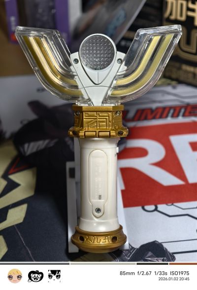 这玩意我记得是在ur25周年之前推出的,百来块的价格有不错的造型,五个形态音效,还内置了一段战斗BGM,不过问题就是时间长了双翼有一边会卡住,必须使劲摁按钮才行