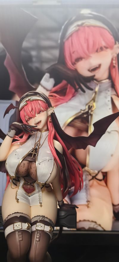 得益于优秀的原画,这款已经赢在了起跑线。她眼神拉丝勾魂,配上张嘴和挑逗的动作,饥渴难耐的魅魔形象跃然模上,让人浮想联翩。侧身微倾,肉体虽丰但线条仍柔和自然。堕化成翅膀的头巾,修女装但是耳钉金链蕾丝镂空;银文、爱心尾,加上残破的十字架,各种元素碰撞冲突却又融合得恰到好处,在xp上和谐齐舞。能让人脑补的模就是好模,wf上看到她瞬间就被魅惑定身开始头脑风暴了。颗秒说是。