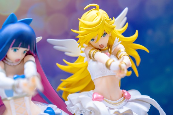 整体还行。但POP还是那个POP。没事别买,买了也别期待。 做工是一如既往的烂,漆面巨脏,莫名其妙的凹痕,飞边,漆面橘皮,又是一款P了我半天的东西。stocking肚子那块的透明感做的像层油纸。虽然知道pop是个什么样子,但是实际拿到手还是会被震惊到。买的降低预期吧,毕竟是POP。不知道哪个神人想着把这么好的造型塞进POP的 (PS:照片已经P掉很多瑕疵了) 另外这个造型还原的是TV第一季第13集大概20分钟左右的那一卡。stocking把袜子脱了,所以没有袜子