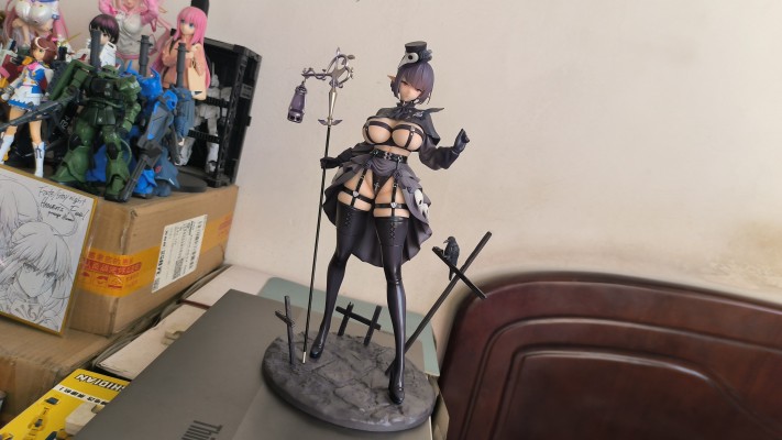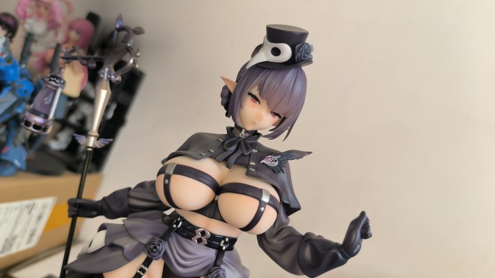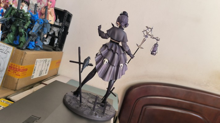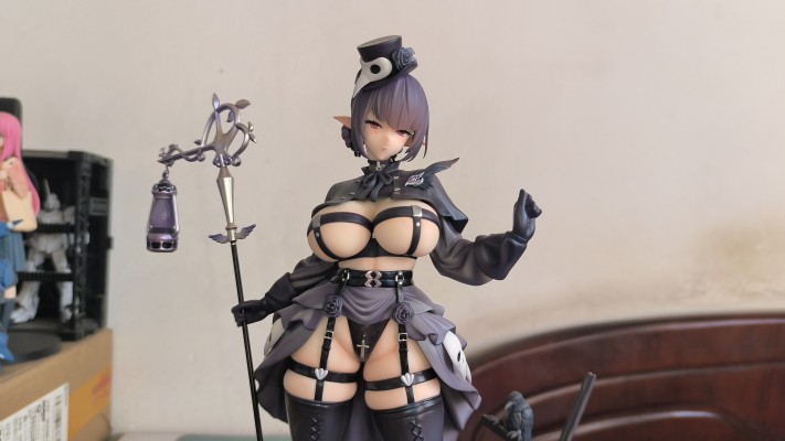 实物到手蛮大一只,对比原画感觉还原地还是挺好的,面雕基本没有角度限定。整体造型很吸睛尤其是脖子以下大腿以上的部位 ˃̶͈ ꇴ ˂̶͈ ,下面的勒肉挤压感效果也十分棒捏,其他各种涂装做的也还可以。手杖吊灯包括乌鸦刻画的很到位,这次的地台设计各种元素(栅栏)个人感觉还是挺符合主题风格的❛˓◞˂̵✧