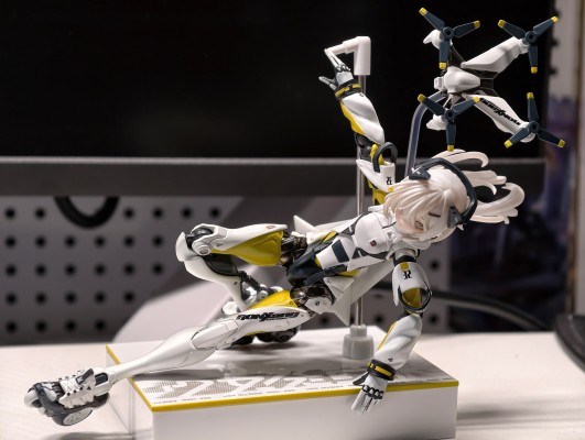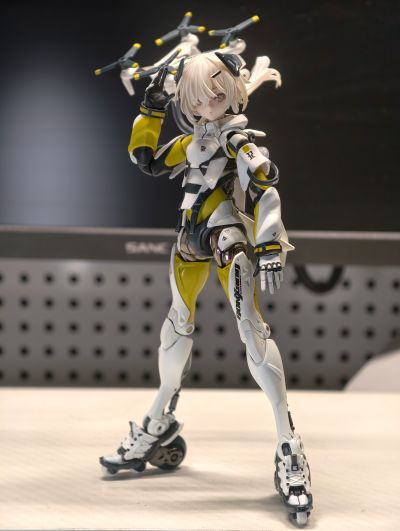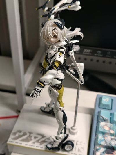 还好包装够硬。本家发神通快递真难顶,第一次见到这么变形的。第一次见到扁头的机娘,大长腿真不错,真是艺术品。双手难评,肘关节比较松,还有一堆蹭色,涂装不到位,一看就是代工厂防尘不行。地台不错,带收纳盒,完美收纳,歪瑞古德。