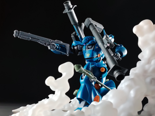 为了玩法可以稍微丰富一点特意收了个补件来玩对称双枪,整体把玩下来没感觉到万代对这玩意的可动结构有多上心以至于这东西甚至和hg打的有来有回,受机设造型影响大腿根那一块可动注定不会有多好,手臂侧抬不到90度武器的握持也一般般爆雷链更是根本抓不稳了,最搞的是没给腰部后仰来辅助还原贴地飞行面朝镜头的画面,结构上唯一让我觉得还不赖的地方也就只有肩甲了,如果能低价入手的话那还不错毕竟有这么多配件