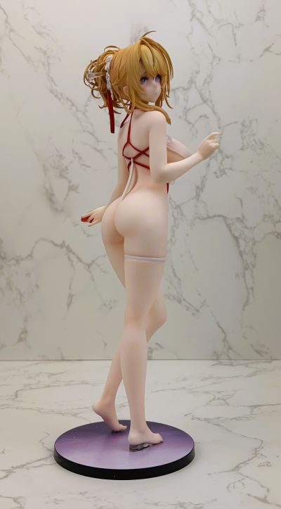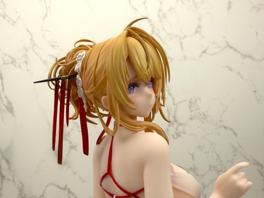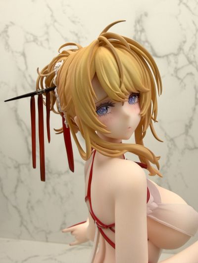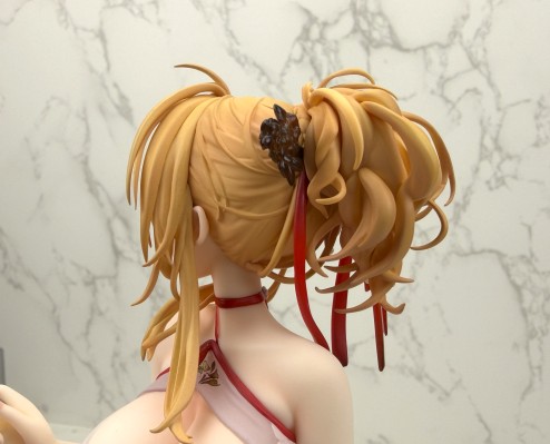 先说总体评价吧,中等偏上。 优点: 素体状态毫无缺点。整体偏暖色,肤色自然,脸部刻画的基本上和官图一模一样了。头发也很锐利。束带也没有溢色。造型是真的没得说。就两个字,好看。 缺点: 盒子居然不是标准ALTER的全塑料透明盒子,衣服安装相当紧,由于过于紧了导致在对大地台桩的时候,主要靠的是人物脚部的那根,衣服下面的四根桩其实可以去掉了(我再装的时候已经断了一根)。衣服表面很不满意,表面有不规则的纹路,漆面也有水纹,显得漆面很脏。好在有大量的褶皱造型导致没有大块的颜色暴露这个缺点。最后是那条饱受诟病的大缝。量产确实不是在做GK,这条缝不好藏。介意的话那就直接素体站就好了。 可以说问题大都出在衣服配件上,而本体基本完美。