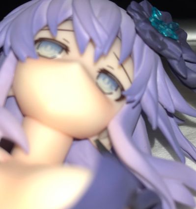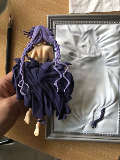 礼服和肘关节缝隙明显,左耳朵是一个长方形条,背后本来没有蹭色,结果放的就了就粘下来了,就垫了张卫生纸
