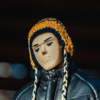 配件清单: . 头雕 . 发型 . 窄肩素体 . 手型 X7+1对 . 尼泊尔编织冷帽 (黄色) . 印花棒球T恤 (灰色) . 工装裤 (藏青色) . LEATHER CLASSIC DOWN JACKET 羊皮羽绒外套(黑色) . 裤链钱包 (深啡色) . 袜子(白色) . cons1970s反